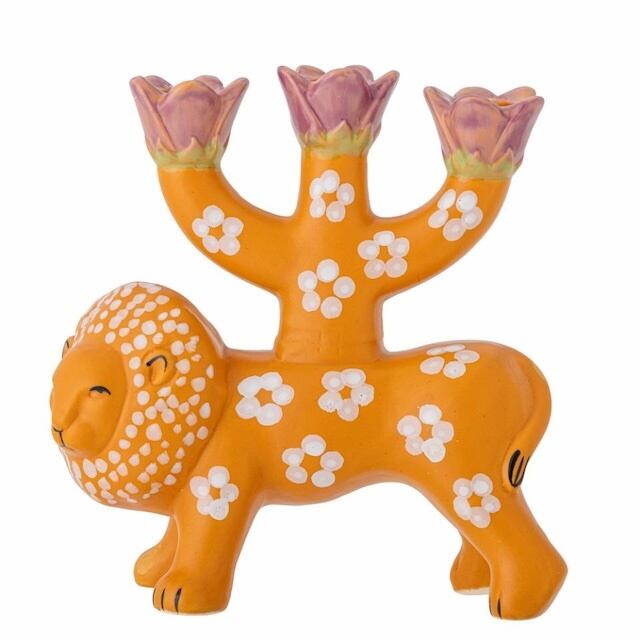 こちらはBloomingvilleのLazarキャンドルホルダー。空間に個性と温もりをもたらす芸術作品のような美しい佇まい。堂々としたライオンの姿のストーンウェア製のキャンドルホルダーです。鮮やかなオレンジ色の釉薬が、陽気でエネルギッシュな印象を与えます!そのボディを彩るのは、丁寧に手描きされた愛らしい花々。ホワイトを基調とした花柄が、オレンジ色のキャンバスに生き生きと咲き誇り、見る人の心を和ませます。