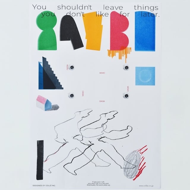 下部には※「If you put it off, you won't do it in the end. Eventually the work piles up.」と、デザインの根底にあるもう一つのメッセージを添えました。