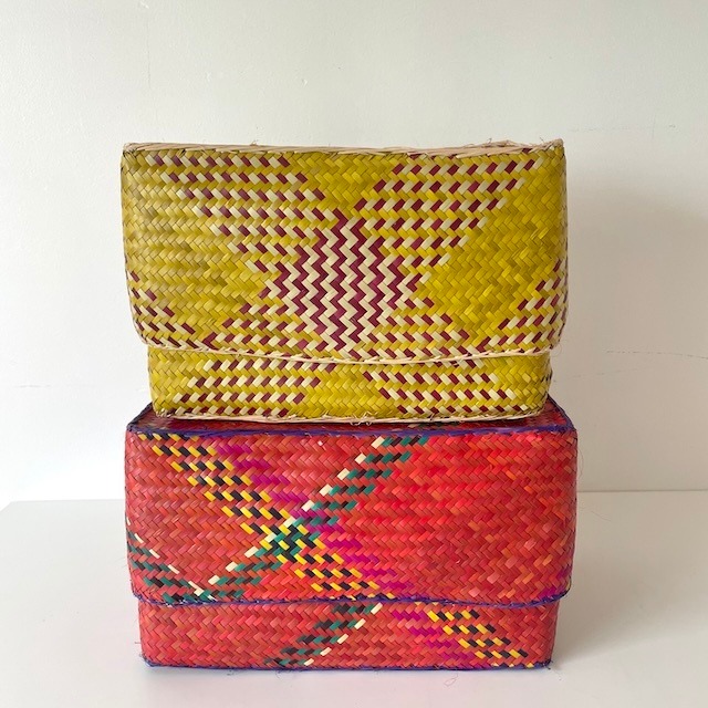 アフリカ・マダガスカルからやってきたズズルという水草を編み上げた可愛い蓋付きかご。蓋つきタイプで小物などがスッキリ収納できます。上と下を別々に使用しても便利! インテリアにも映える可愛い色柄にも注目!使うほどに愛着が湧きそう。