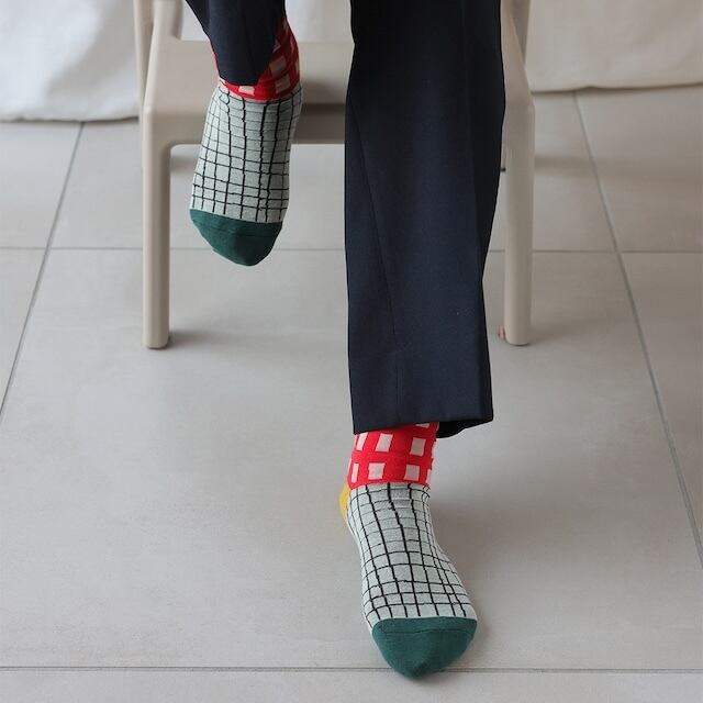 料理創作ユニット「Goma」が描く、ポップで温かみのあるデザインをモチーフにしたソックス。Gomaさんならではのユニークな色使いと手描きの優しいタッチが、足元に楽しいアクセントを加えてくれます。毎日のコーディネートに、遊び心をプラスするアイテム!パンツの裾からちらりと見えるだけで、気分を上げてくれること間違いなし。カラフルで心弾むデザインは、いつものスタイルをより一層引き立ててくれます。Gomaさんのハッピーな世界観を、ぜひ足元からお楽しみください。