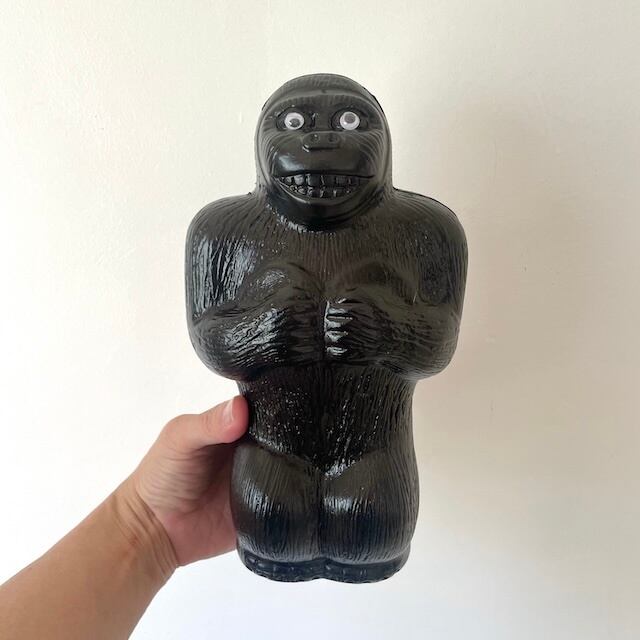 メキシコからやってきたゴリラの貯金箱。1933年に制作された映画『キングコング』では薄気味悪い笑みを浮かべて胸を叩くシーン、その薄気味悪さと愛嬌の間のような絶妙な表情は強く印象に残ります。そんな当時のキングコングに影響を受けたであろうこのゴリラバンク。