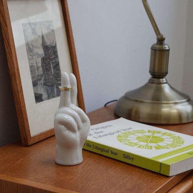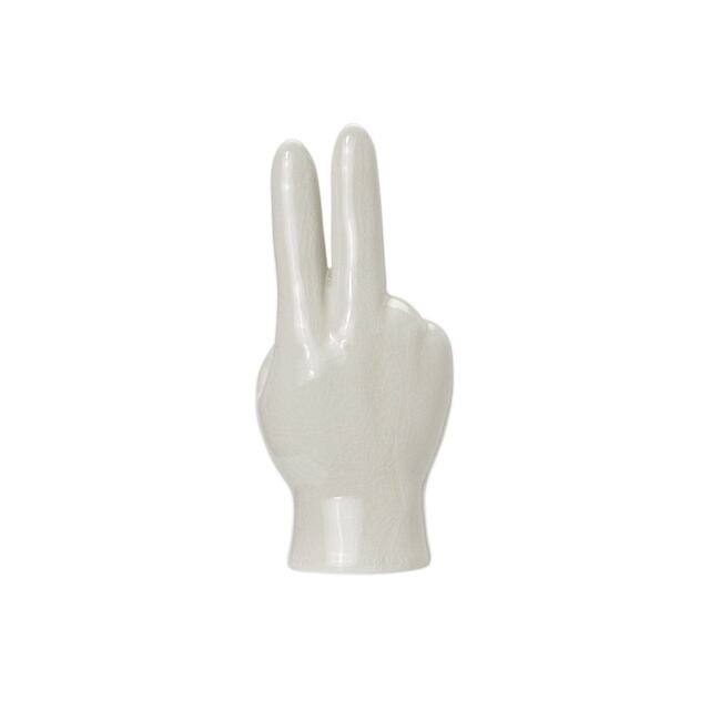 指で「ピース」のサインを作ったユニークなデザインは、置くだけで空間に遊び心をプラスしてくれます。オブジェとして飾るのはもちろん、指にリングをかけたり、手首にブレスレットをかけたりと、アクセサリースタンドとしても活躍してくれます。