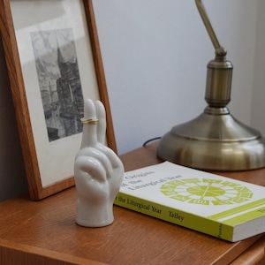 70年代のウッドオブジェにインスパイアされた、手の形の磁器製オブジェです。滑らかなクリーム色の釉薬に、経年変化を楽しめる貫入(かんにゅう)が入っており、使い込むほどに味わい深い表情を見せてくれます。