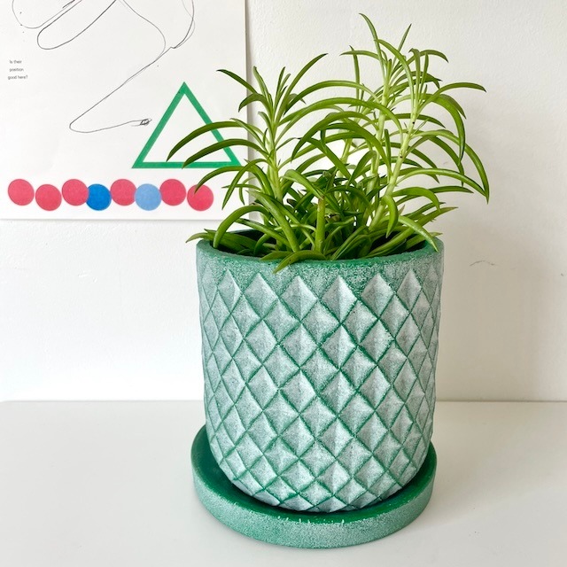 ボコボコとした独特の質感が魅力的な、ダイヤモンド模様の植木鉢。グリーンに映える落ち着いたカラーと立体的なデザインが、お部屋の雰囲気をぐっとおしゃれにしてくれます。観葉植物や花を植えるだけで、まるでアート作品のような存在感に。お気に入りの植物を、個性的な鉢で飾ってみませんか?