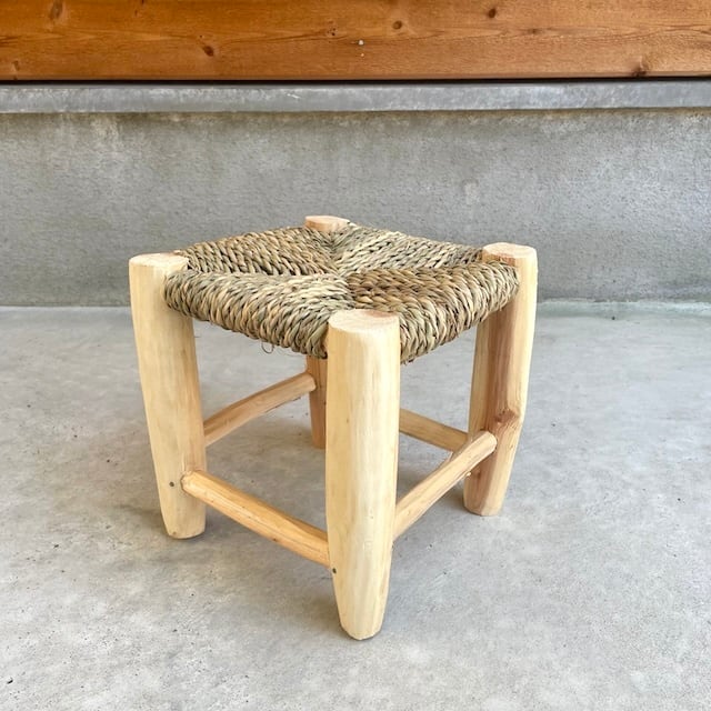 モロッコからやってきたナチュラルな雰囲気が素敵な水草を編み込んだ木製の椅子。軽くてコンパクトな低座タイプ&ミニタイプなので、お子様用の椅子やちょっとした腰掛けや玄関椅子などに便利です。水草を編み込むように張った座面が特徴で、使い込むほどに馴染みます。ナチュラルな木の風合いを生かした脚やすべて手作業で作られる1点ものという点も魅力的!