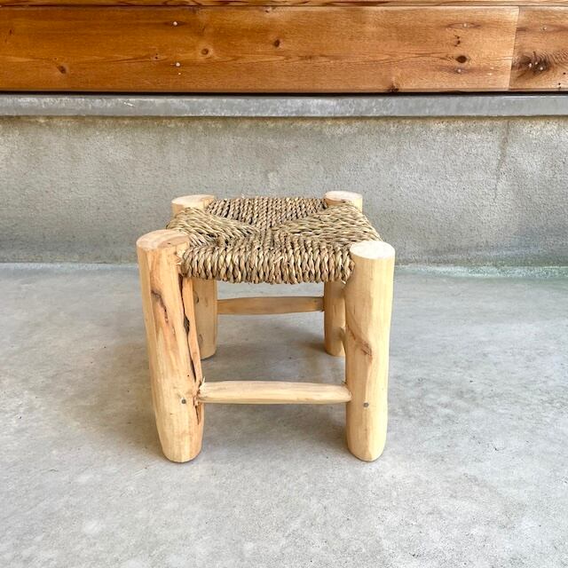 モロッコからやってきたナチュラルな雰囲気が素敵な水草を編み込んだ木製の椅子。軽くてコンパクトな低座タイプ&ミニタイプなので、お子様用の椅子やちょっとした腰掛けや玄関椅子などに便利です。水草を編み込むように張った座面が特徴で、使い込むほどに馴染みます。ナチュラルな木の風合いを生かした脚やすべて手作業で作られる1点ものという点も魅力的!