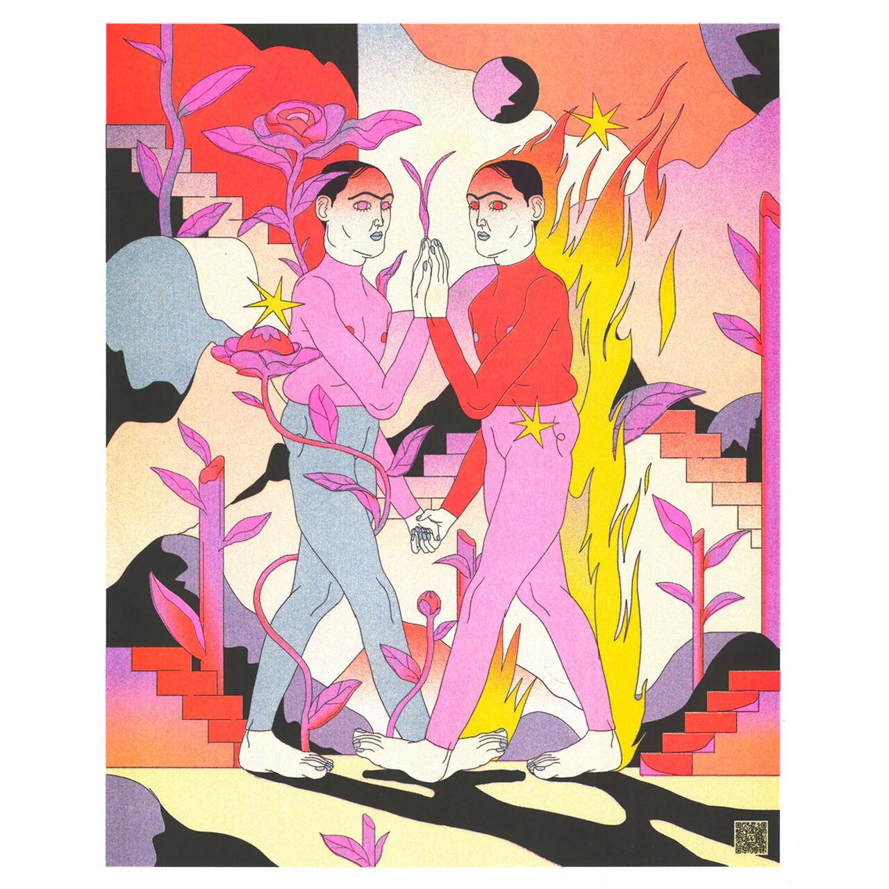フランス・リヨン発KIBLIND Atelier から、ベルリンを拠点に活動するアーティスト兼アニメーター、Raman Djafari(ラマン・ジャファリ) によるリソグラフポスター 「Wish You Were Here」。