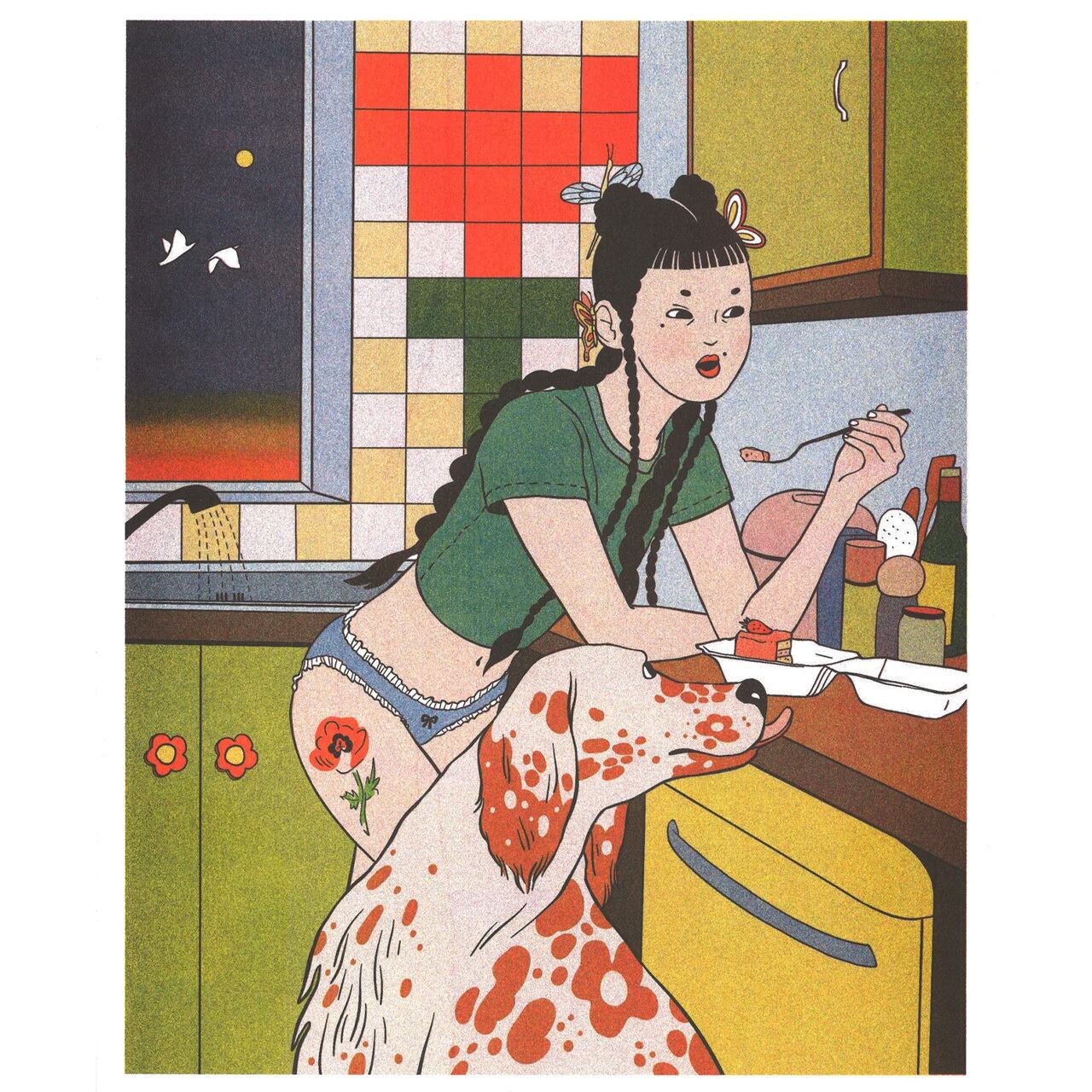 フランス・リヨン発KIBLIND Atelierから、Sunny Wu「Midnight Snacks」。食べること、怠惰な日曜日、誇り高い女性たちなど、自身の様々な情熱を作品に描くアメリカ人アーティスト、Sunny Wu(サニー・ウー)によるアートプリントです。