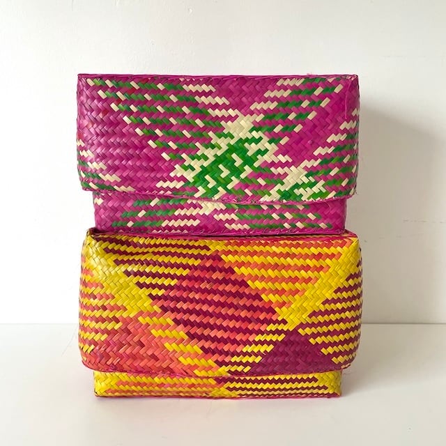 アフリカ・マダガスカルからやってきたズズルという水草を編み上げた可愛い蓋付きかご。蓋つきタイプで小物などがスッキリ収納できます。上と下を別々に使用しても便利! インテリアにも映える可愛い色柄にも注目!使うほどに愛着が湧きそう。