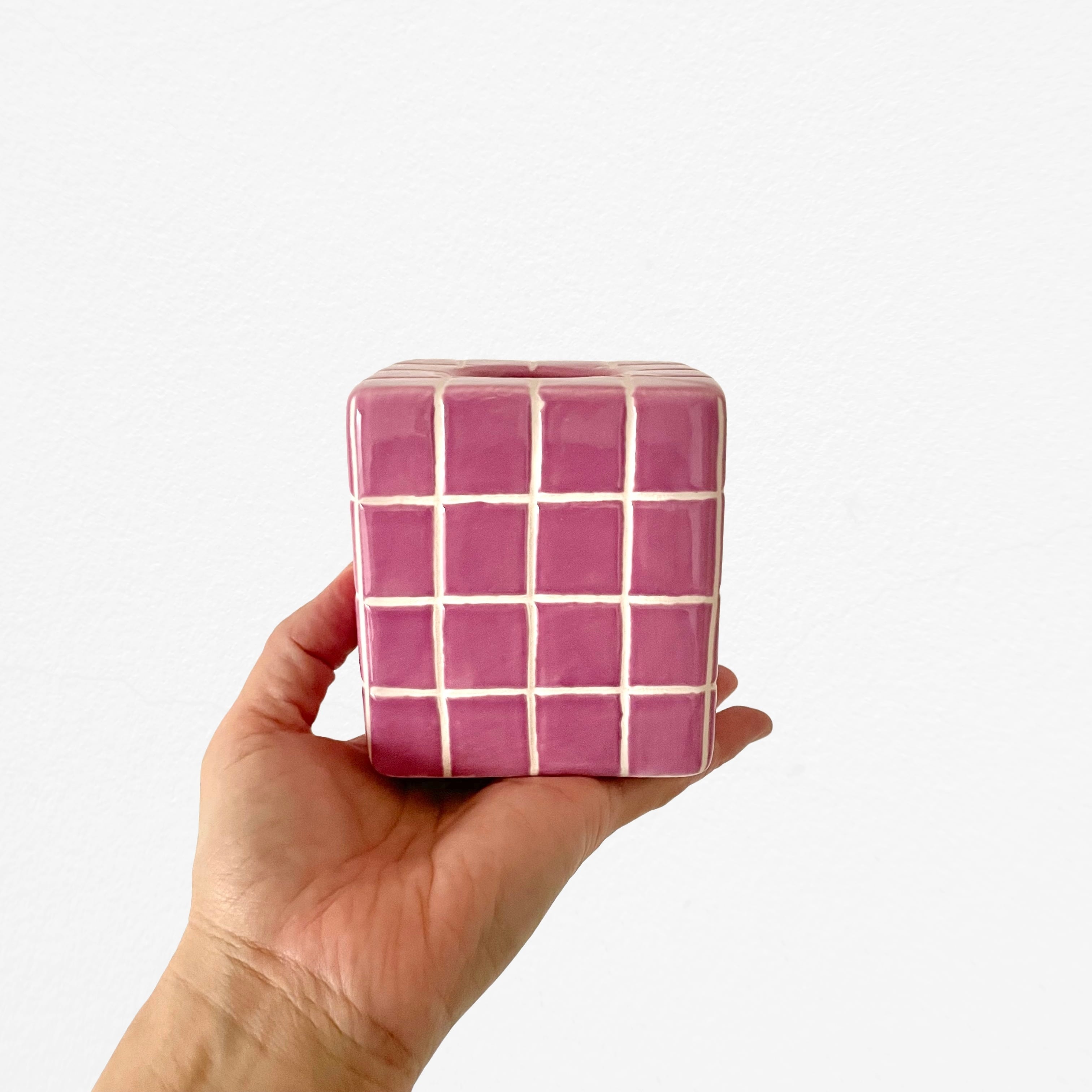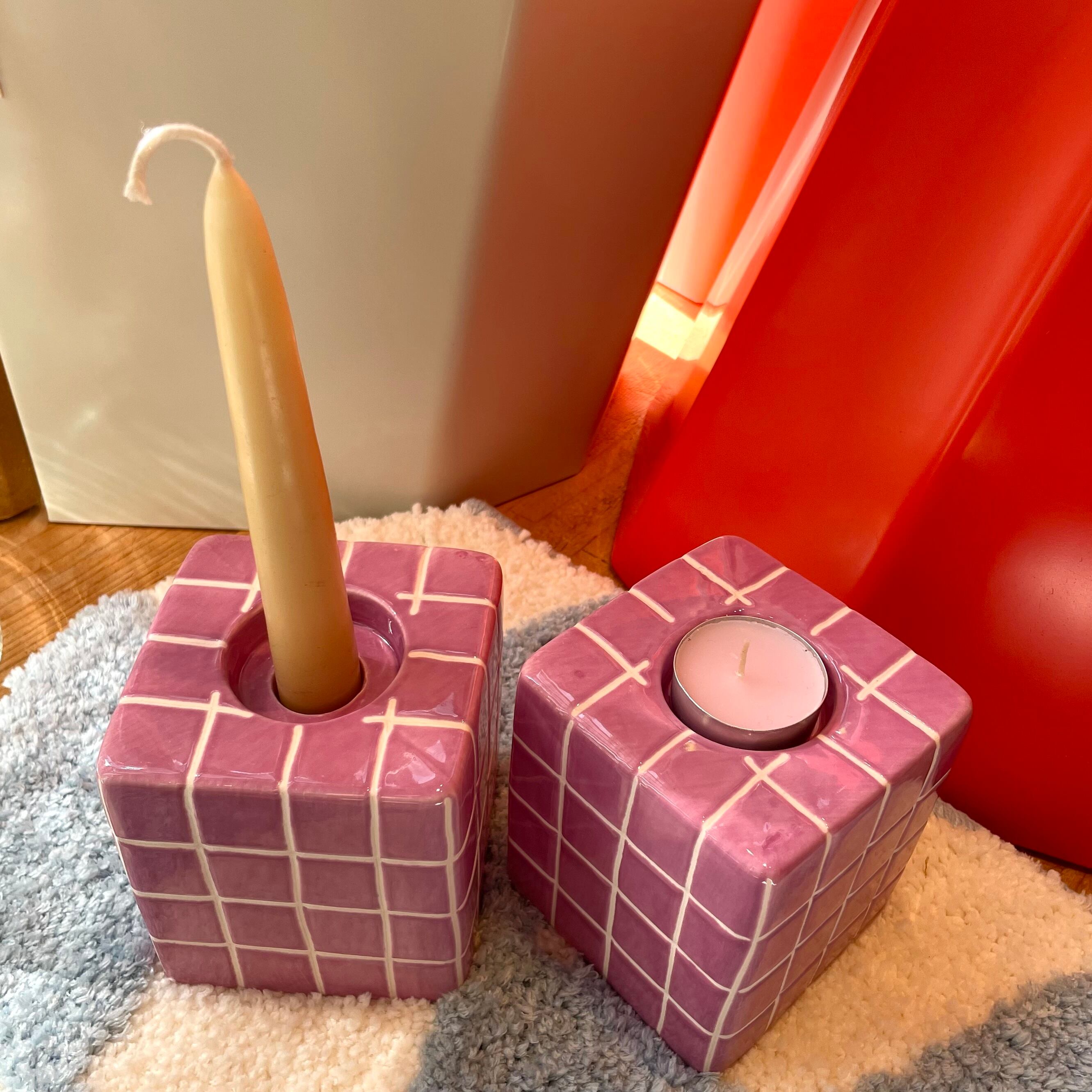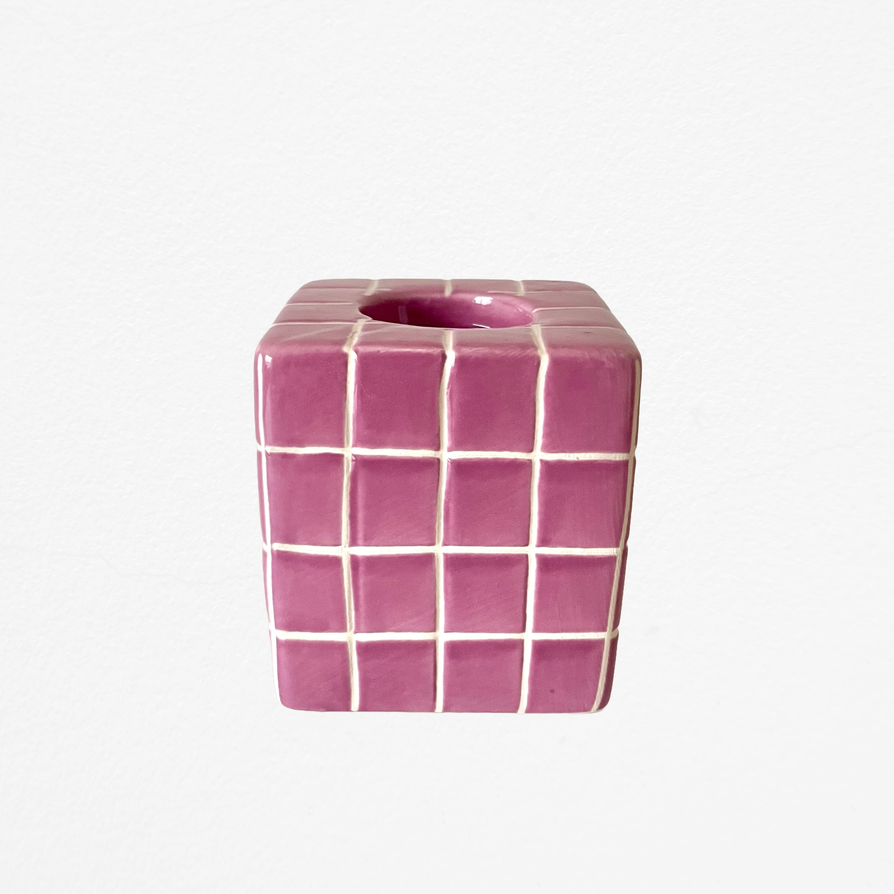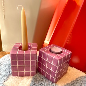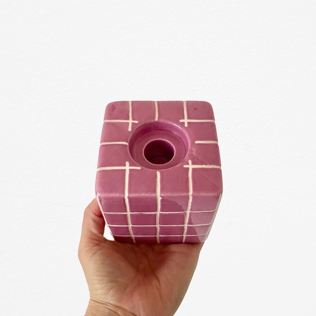 個性的なデザインで空間を彩る、ドイツの老舗インテリアブランド【BOLTZE】のキャンドルホルダー。鮮やかなピンクのボディに白いグリッド(格子)模様が施されており、まるでポップなタイルを積み重ねたようなユニークなキューブ型。インテリアのアクセントとして、お部屋に遊び心をプラスしてくれます。キャンドルホルダーとしてはもちろん、窓辺や棚に飾ってオブジェとして楽しむのもおすすめです。