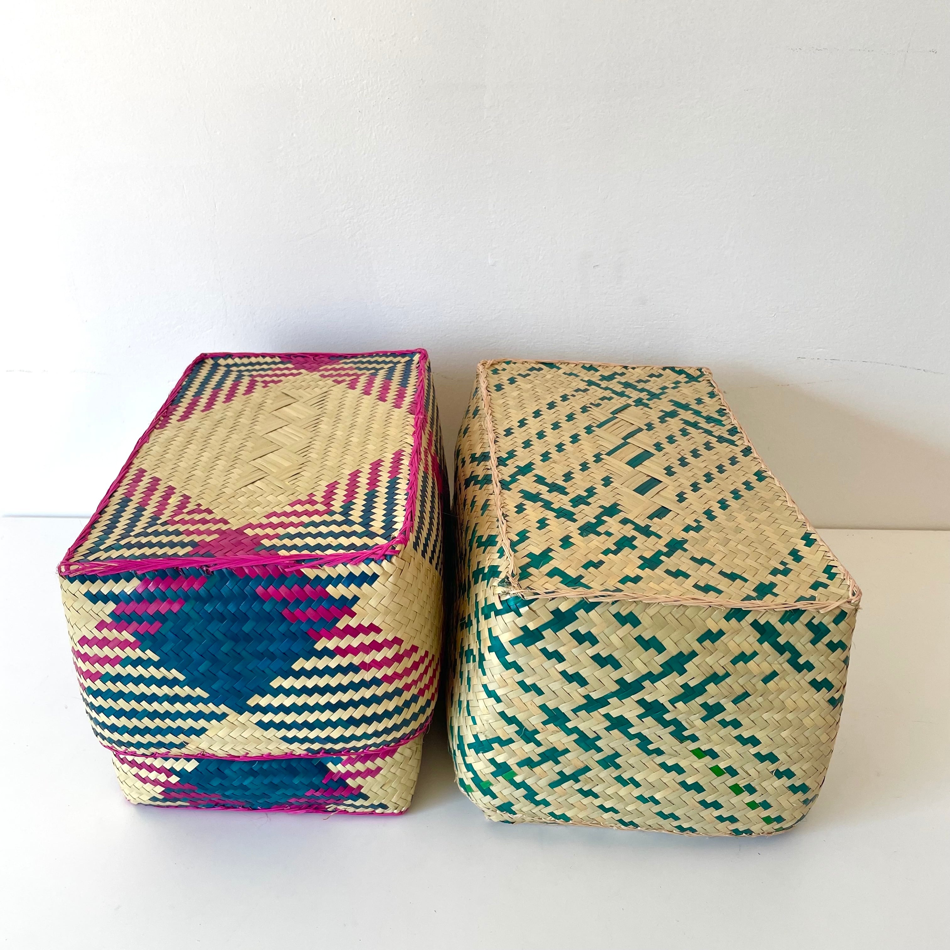 Rectangular colourful basket M w25cm×15cm×h16cm四角カラフル蓋付き収納かご