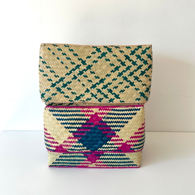 アフリカ・マダガスカルからやってきたズズルという水草を編み上げた可愛い蓋付きかご。蓋つきタイプで小物などがスッキリ収納できます。上と下を別々に使用しても便利! インテリアにも映える可愛い色柄にも注目!使うほどに愛着が湧きそう。