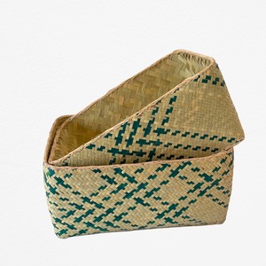 アフリカ・マダガスカルからやってきたズズルという水草を編み上げた可愛い蓋付きかご。蓋つきタイプで小物などがスッキリ収納できます。上と下を別々に使用しても便利! インテリアにも映える可愛い色柄にも注目!使うほどに愛着が湧きそう。
