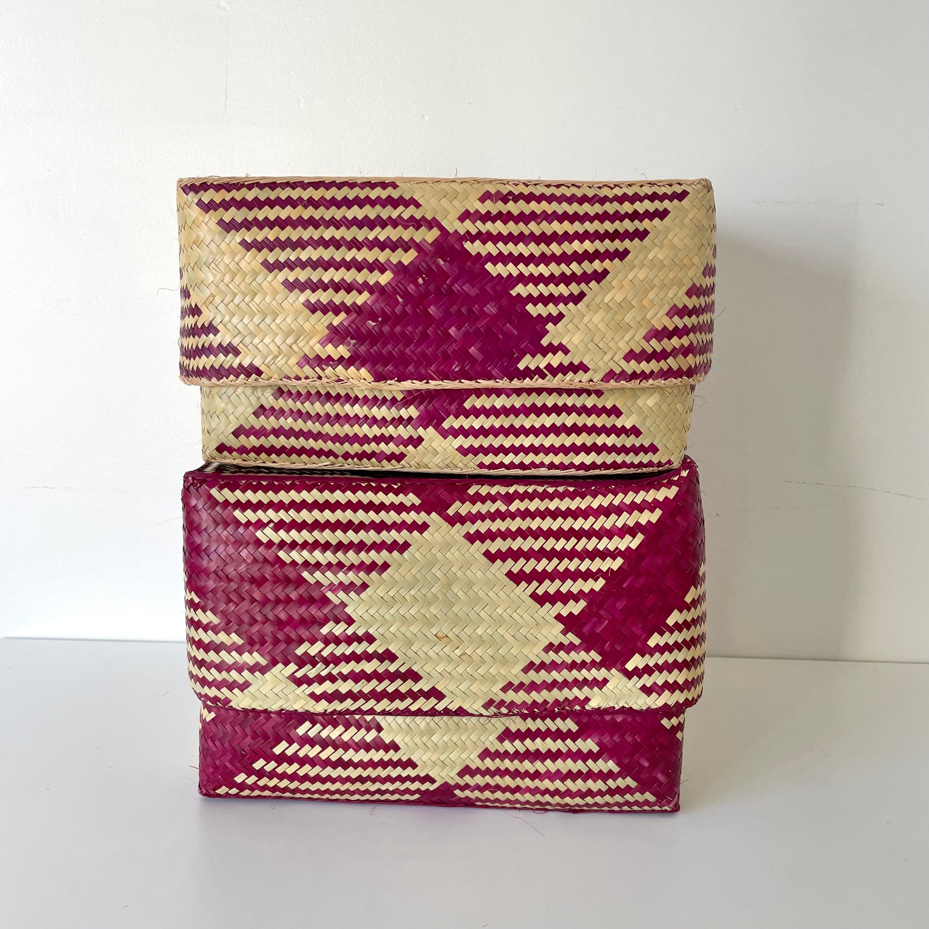 アフリカ・マダガスカルからやってきたズズルという水草を編み上げた可愛い蓋付きかご。蓋つきタイプで小物などがスッキリ収納できます。上と下を別々に使用しても便利! インテリアにも映える可愛い色柄にも注目!使うほどに愛着が湧きそう。