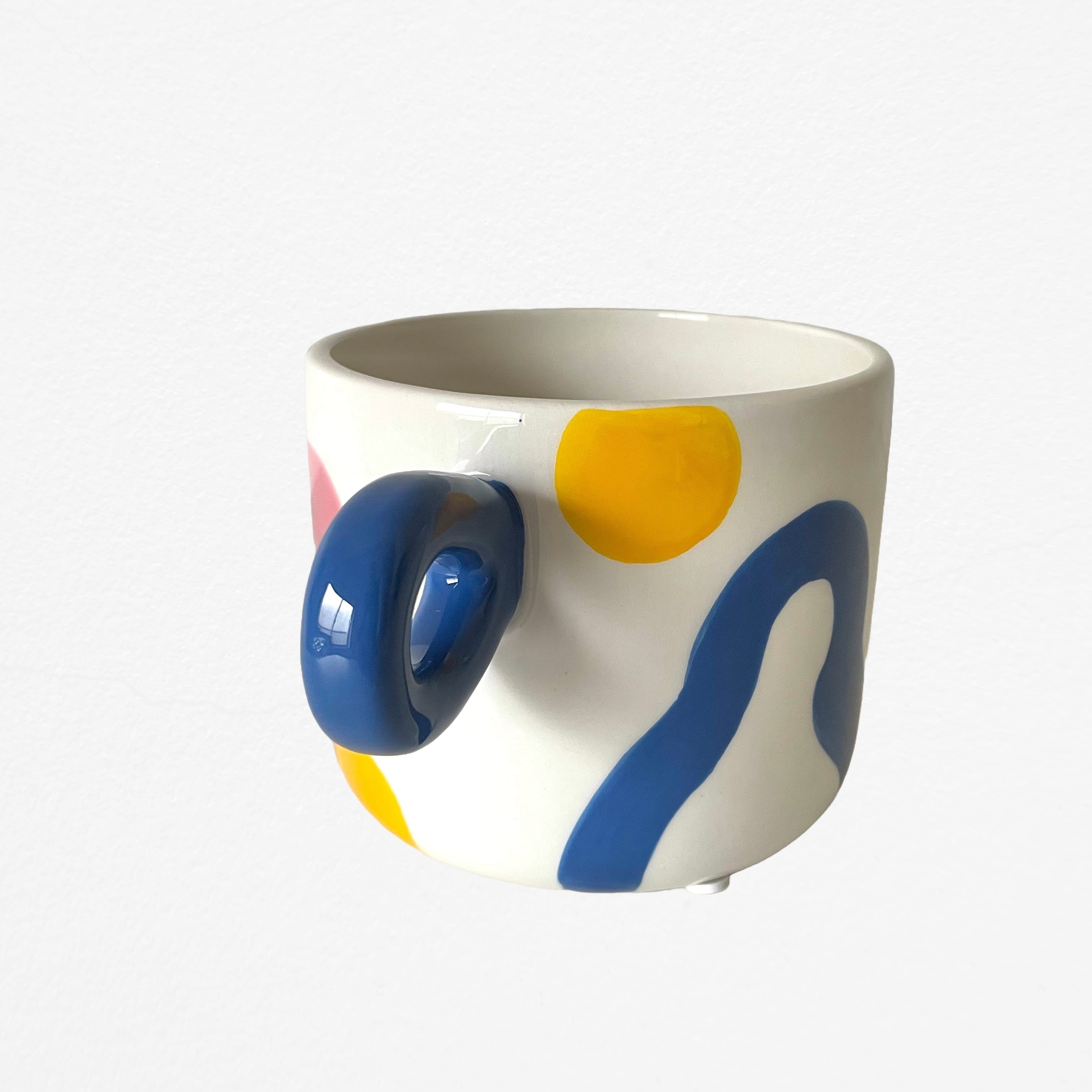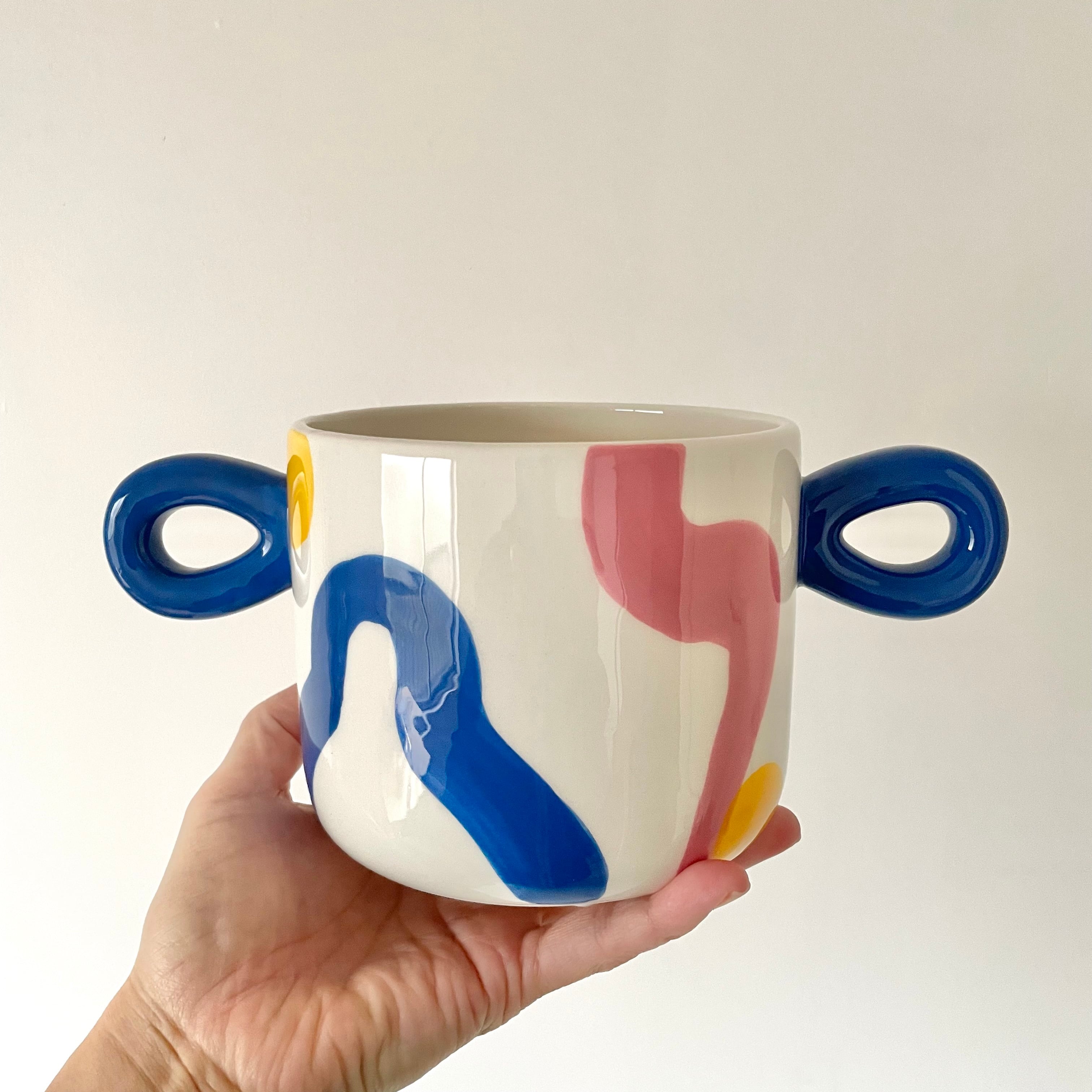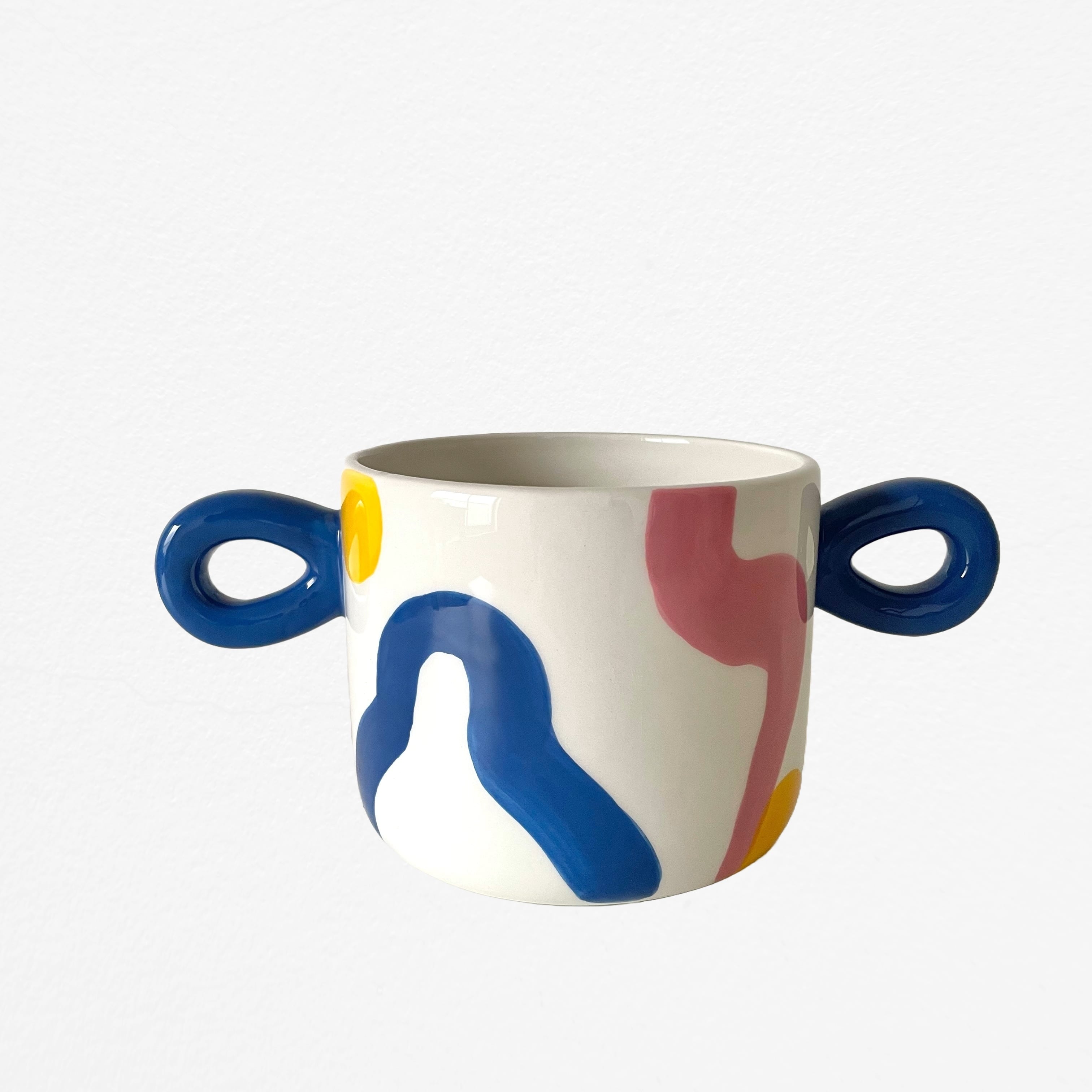 こちらはQUE RICOから届いた「Mariana Sunny Swirls」プラントポットは、お部屋に活気をもたらすアートピースです。白い本体に、ブルー、ピンク、イエローの陽気なスワール(渦巻き)模様が大胆に描かれています。両サイドに配された鮮やかなブルーのハンドルは、ポップなアクセント!モダンで楽しい雰囲気を強調します。どんなグリーンも瞬時にスタイリッシュに飾り上げ、インテリアの主役へと変えてくれそう。単に植物を育てるだけでなく、空間を彩るデザインオブジェとしても楽しめます。バルセロナの太陽のような明るさを、あなたの日常に加えてみませんか。