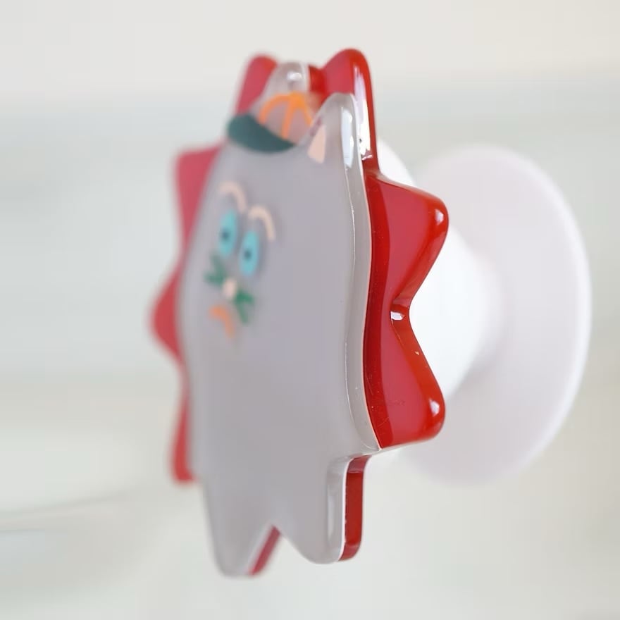 イラストレーターMATOBA YUKOさんとSALAHがコラボレーションした、遊び心あふれるスマートフォン用グリップ。猫のカツオ君のどこか不機嫌そうなユニークな表情と、存在感のあるデザインが手元に個性をプラスします。野球帽をかぶったカツオ君のモチーフが、日常にポップなユーモアを添えます。