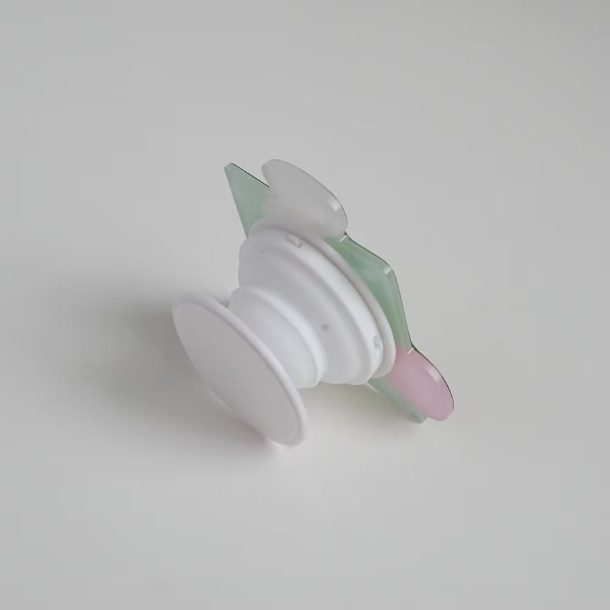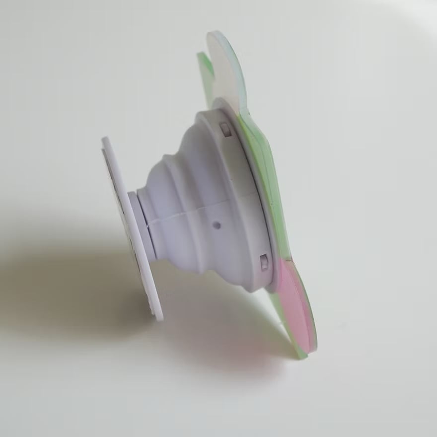 このグリップは、モチーフを引っ張ることで2段階の高さに調整が可能です。指を挟んでしっかりとスマートフォンをホールドできるため落下防止に役立つほか、動画視聴時などに便利なスタンド機能としてもご活用いただけます。