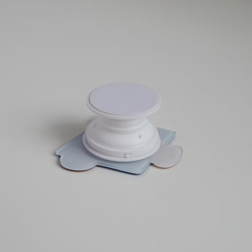 グリップの後面には強力な粘着テープがついており、ケースの平らな面にしっかりと貼り付けて使用します。一度貼り付けたら簡単に外れることのない粘着力のため、貼り付けの際は慎重に位置を確認してから行ってください。プラスチック、ポリカーボネート、TPU製のケースへの貼り付けを推奨いたします。特にTPU製のケースに貼る際は、必ずケースをスマートフォン本体に装着した状態で貼り付けてください。なお、シリコンやEVA素材のケースには貼り付けしづらいこと、合皮やレザー製のケースは質感によって粘着するものとしないものがあることを予めご了承ください。