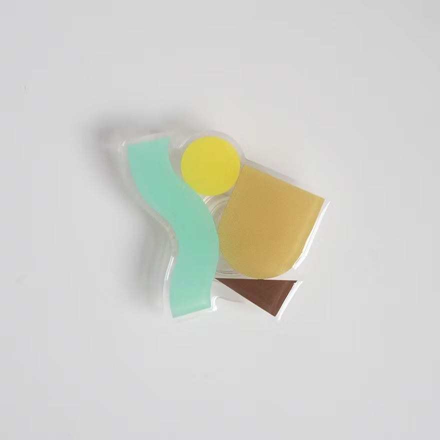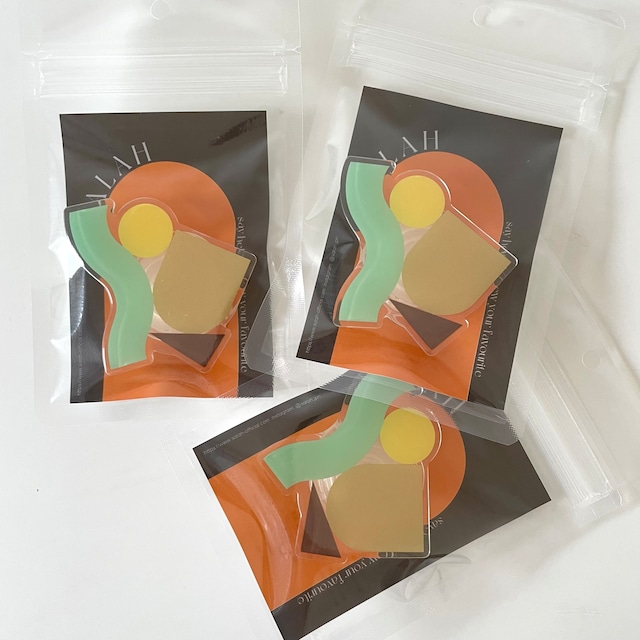爽やかなミントグリーンのウェーブ、ビビッドなイエローのサークル、そしてシックなブラウンなど、多彩な図形と色彩を重ね合わせたSALAHのアート性の高いスマートフォン用グリップ。鮮やかでフレッシュなグリーントーンを基調としたこのデザインは、まるで絵画のようで、持つ人の手元に遊び心とモダンな雰囲気をプラスします。