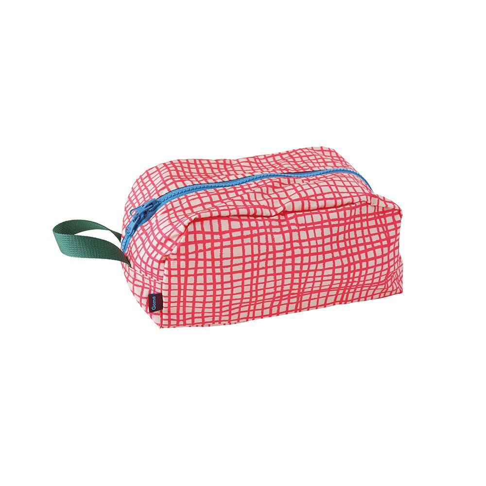 料理創作ユニットGoma(ゴマ)が描くハッピーなデザインをモチーフにした多用途ポーチ。鮮やかな手描きの温かさが伝わるチェック柄。Gomaらしいポップで遊び心のある色使いが、使うたびに気分を明るくしてくれます。素材には軽量で耐久性のあるポリエステルを採用。水や汚れに強く、汚れてもサッと拭き取れるため、普段使いはもちろん、アウトドアや旅行シーンでも大活躍します。便利な持ち手付きで、バッグからの取り出しや、ちょっとした移動時の持ち運びにも便利です。ティッシュボックスもすっぽり入るため、お部屋や車内でのカバーケースとしてもお使いいただけます。化粧品、ガジェット類、衛生用品など、様々な小物をまとめて整理整頓できる頼れるアイテムです。