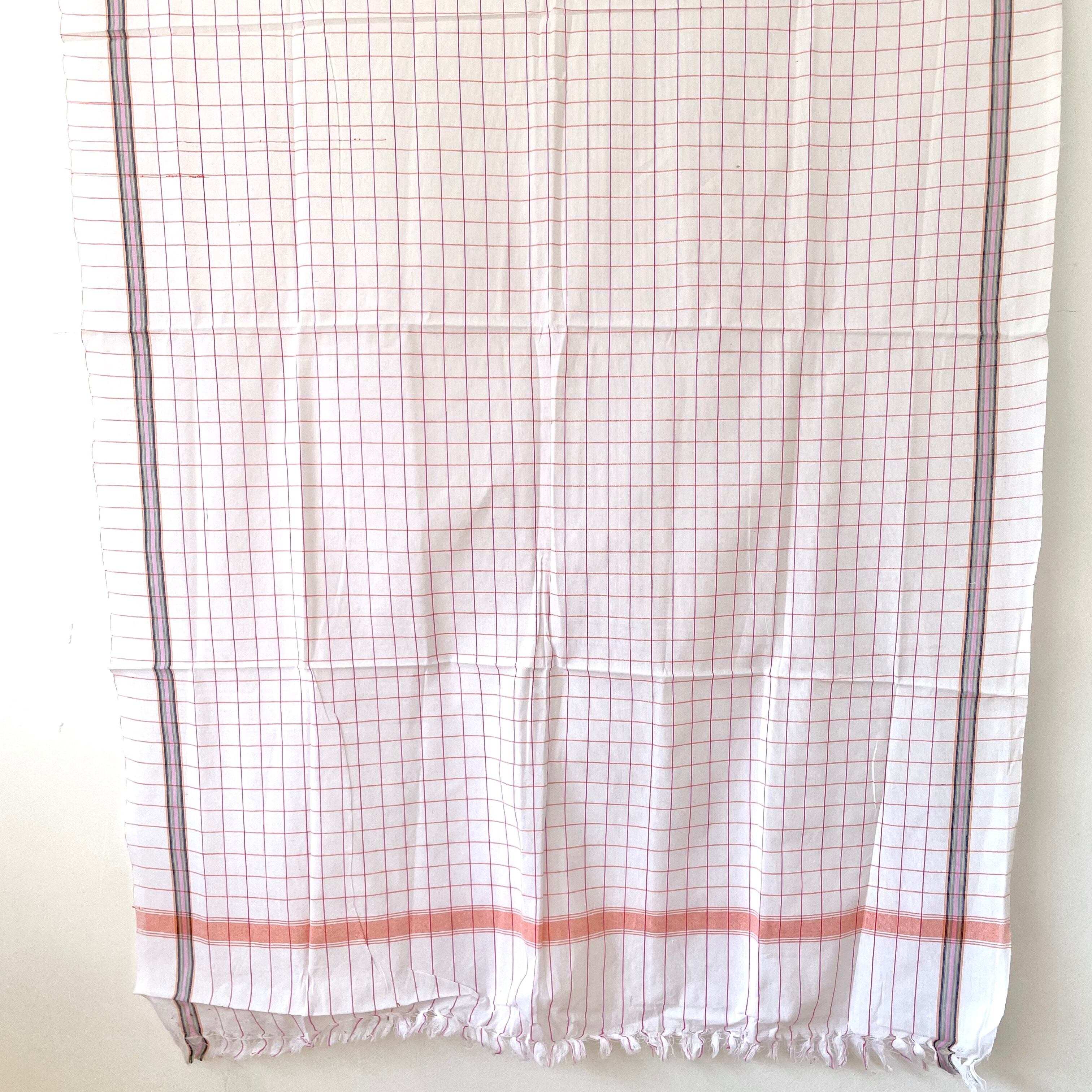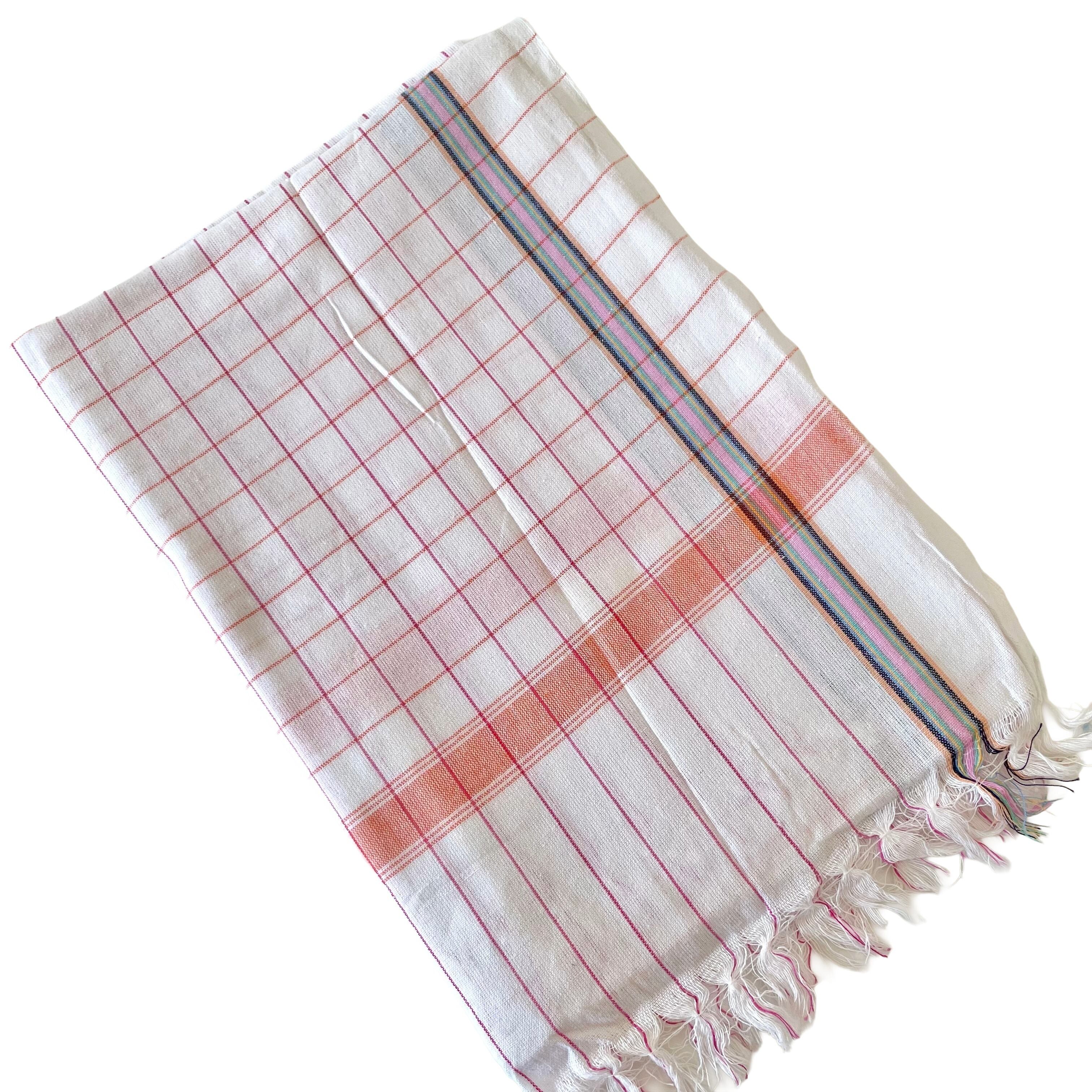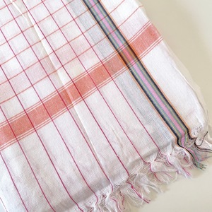 インドの伝統的な織りの技術が生み出した、カラフルでPOPな色合いが素敵なコットンファブリック。白地にオレンジ、レッドなどの鮮やかな色が交差する爽やかなタータンチェック柄は、お部屋に明るいアクセントをもたらし、空間を楽しく彩ります。素材は上質なインド綿(コットン100%)を使用しており、軽やかで吸湿性に優れ、肌触りが非常に良いのが特徴です。お洗濯を繰り返すほどに、さらに柔らかく肌に馴染む風合いの変化もお楽しみいただけます。約170cm × 85cmという使い勝手の良いサイズ感で、ダイニングテーブルに敷いてテーブルランナーとして使ったり、棚や収納の目隠し布としてご活用いただけます。また、ソファやベッドにラフに掛けてインテリアの雰囲気を変えるのもおすすめです。両端にあしらわれた、手作業の温かみが感じられるフリンジが、デザインに軽快な表情を加えています。
