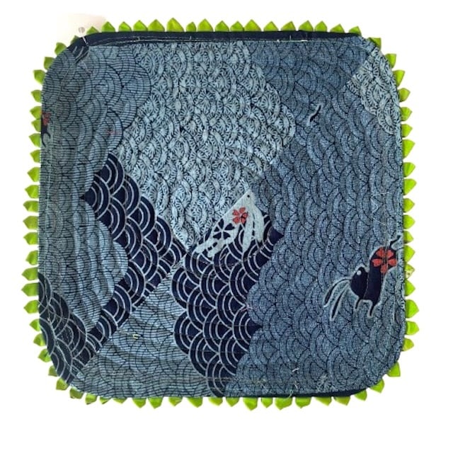 ひとつとして同じものはない、個性豊かな生地の組み合わせが、マット全体に深みと表情を与えています。さらに、裏生地には、エキゾチックな雰囲気を持つアフリカンな柄の生地を組み合わせることで、見えない部分にも遊び心とポップさが詰まった仕上がりとなっています。
