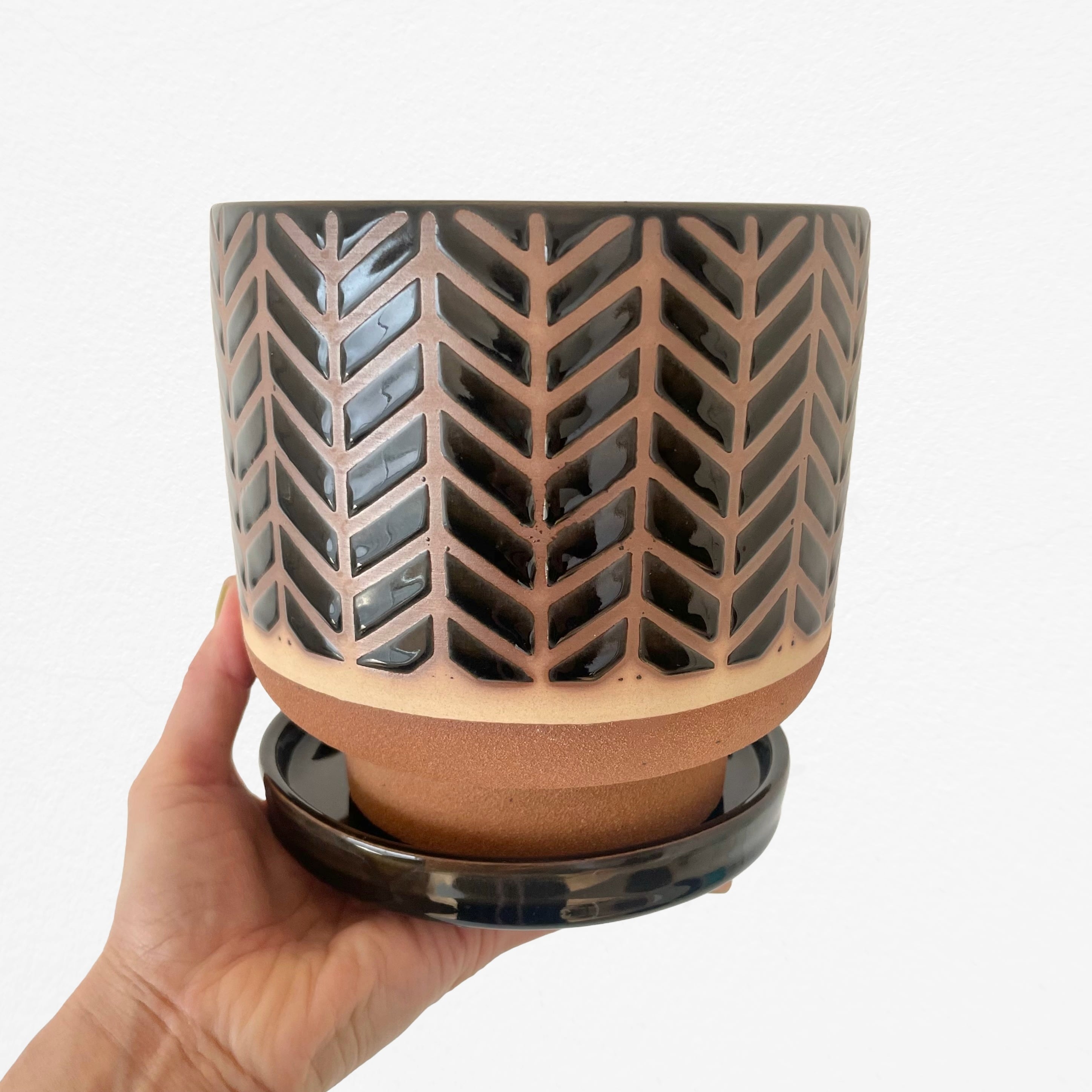 Herringbone Ceramic Planter ヘリンボーン柄 植木鉢