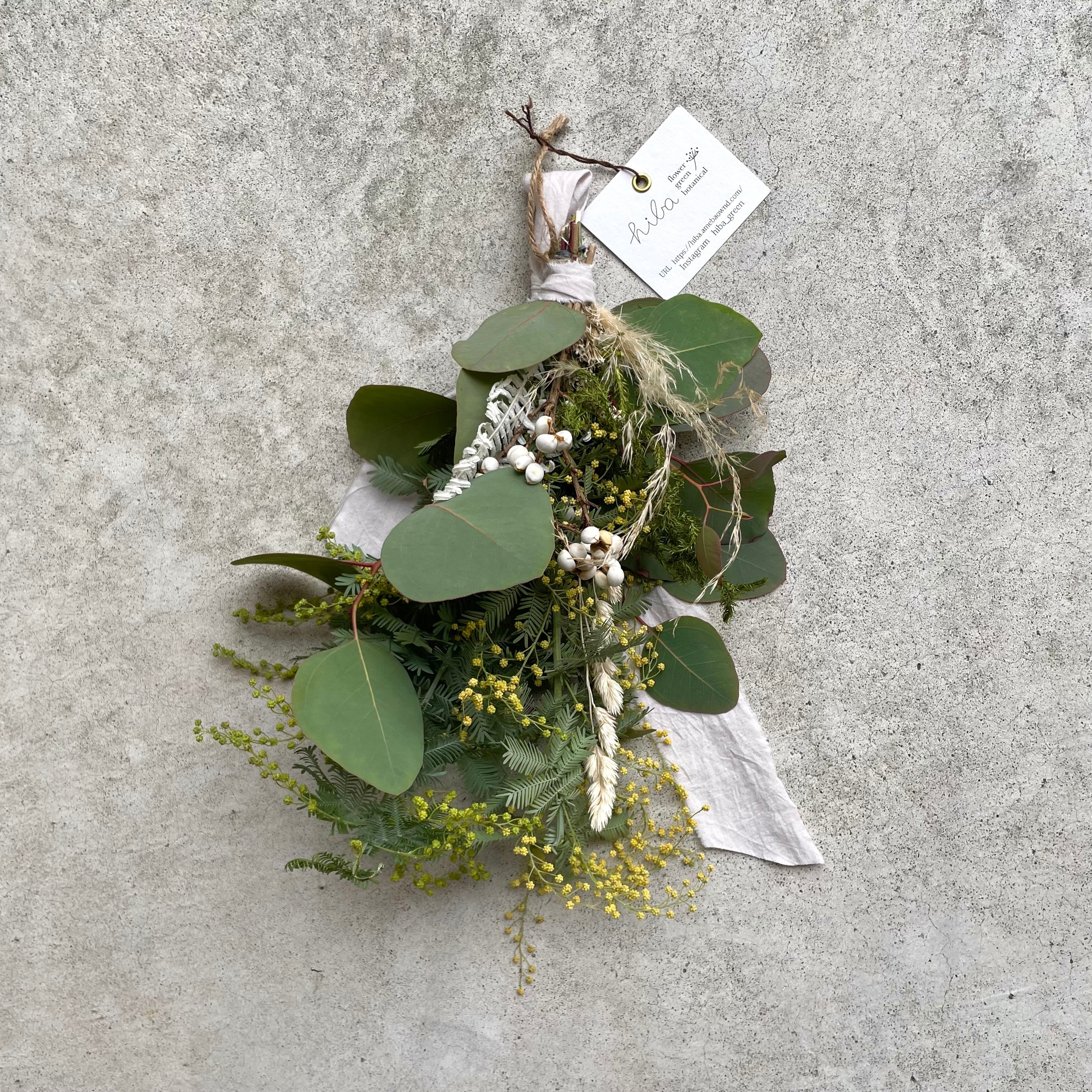 hiba "Green Mimosa Mini Swag" ヒバ グリーンミモザのミニスワッグ