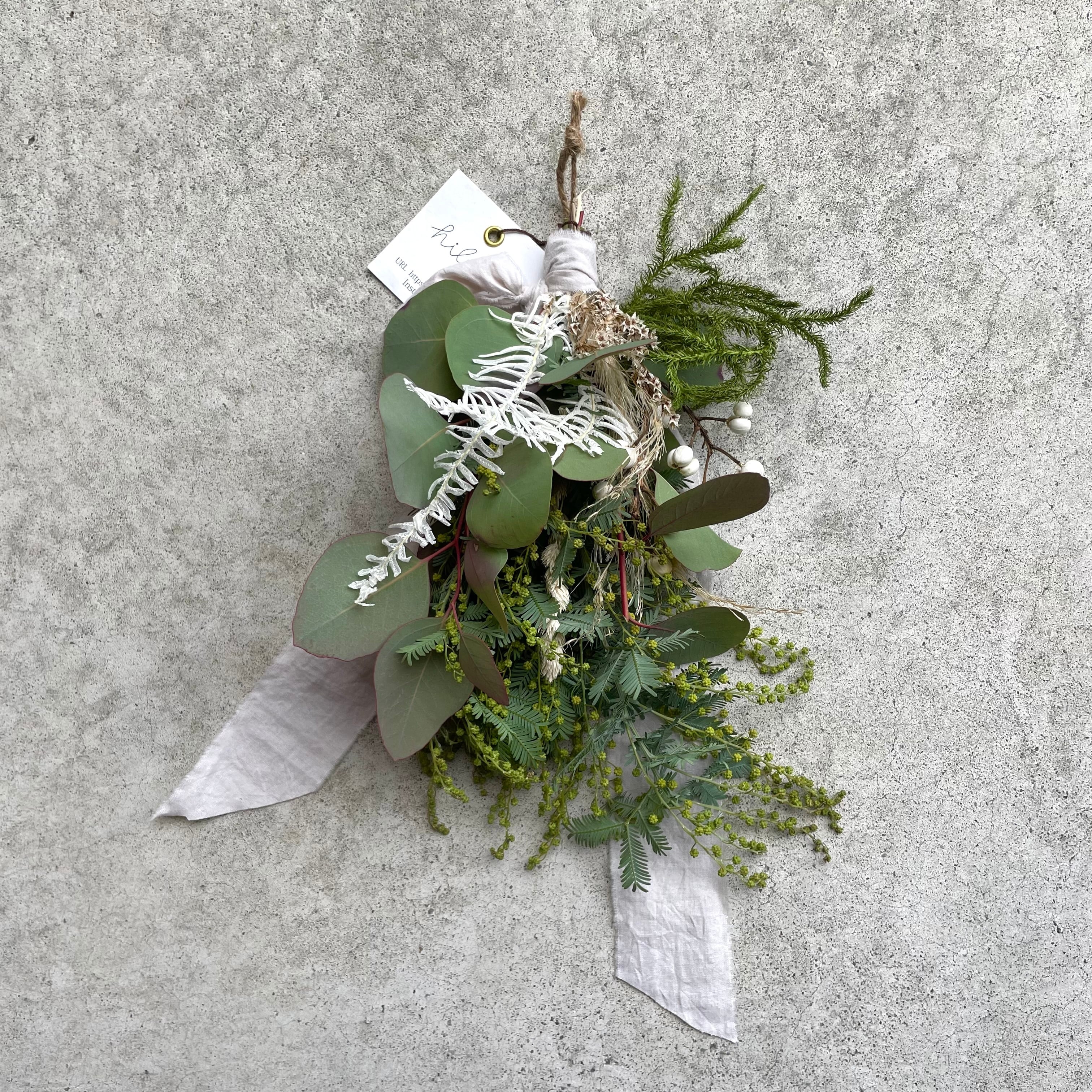 hiba "Green Mimosa Mini Swag" ヒバ グリーンミモザのミニスワッグ