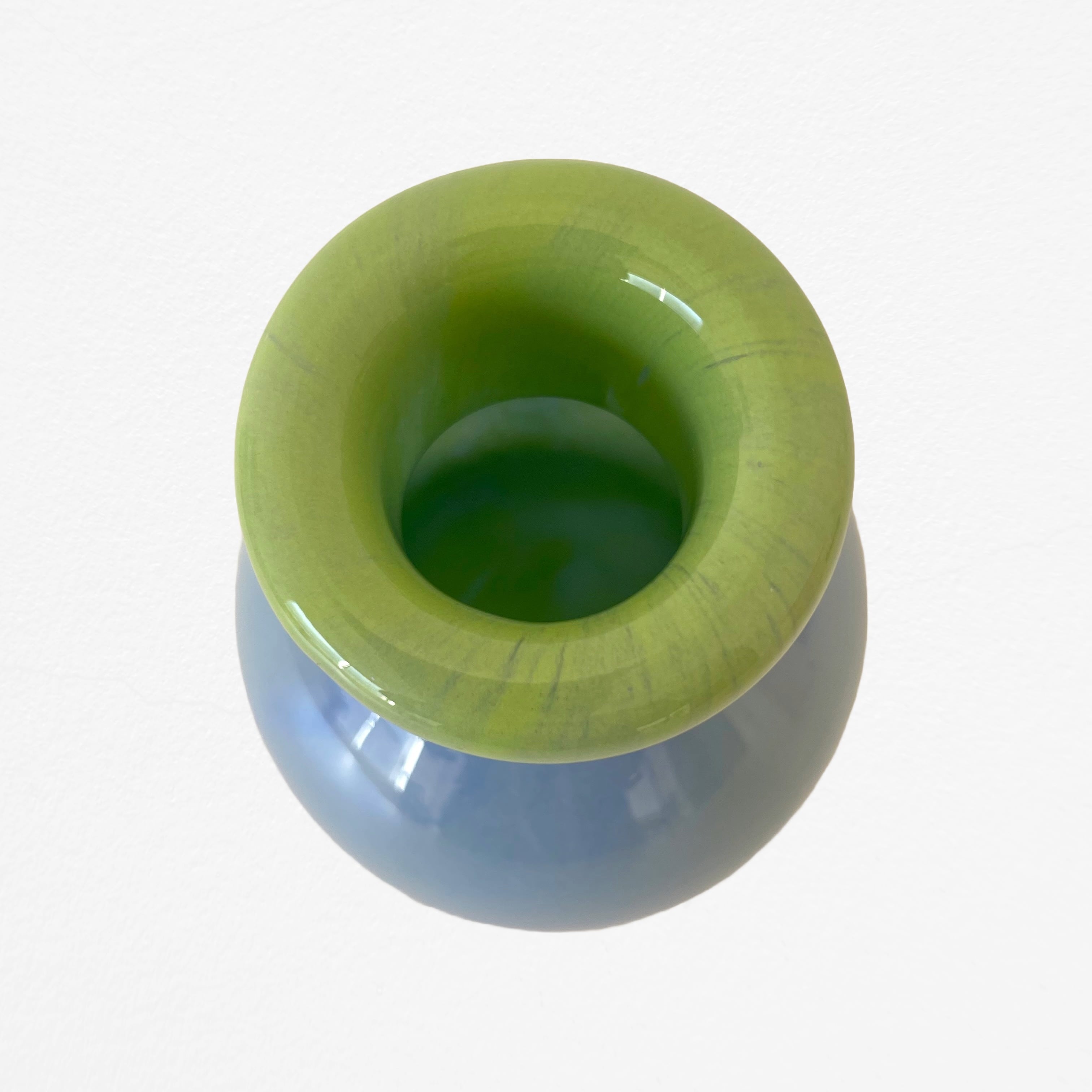 くすみカラーでありながらどこかPOPなブルーのボディに、優しいグリーンの縁取りを効かせた、モダンで遊び心あふれるガラスベース"Torta Glass Vase"。イタリア語で「ケーキ」を意味する「トルタ」の名が示す通り、どこかおいしそうで愛嬌のあるフォルムが、お部屋の雰囲気をパッと明るく軽やかに彩ってくれます。
