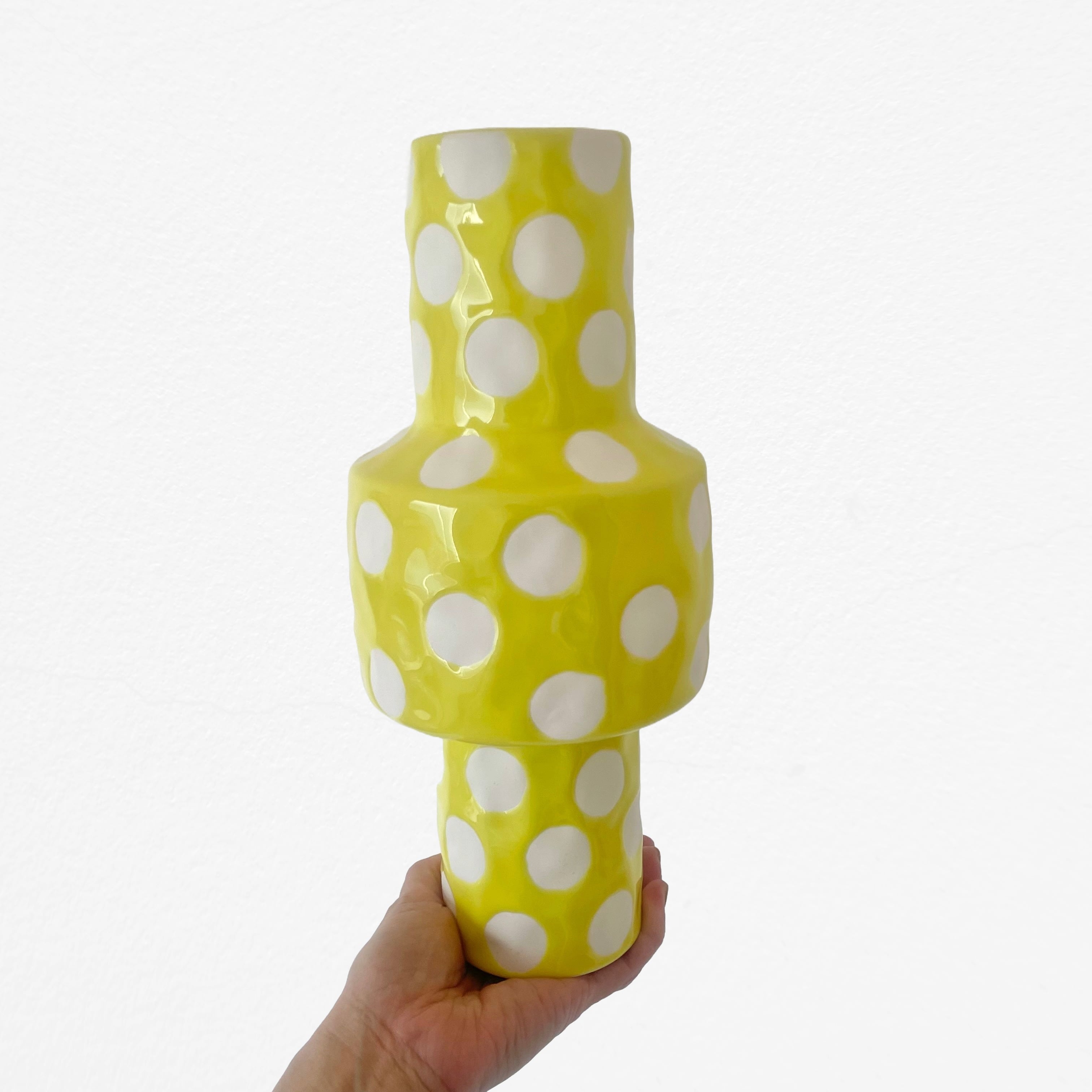 Polka Dot Flower Vase Yellow Φ約13cm × H30cm ポルカドットフラワーベース 花瓶