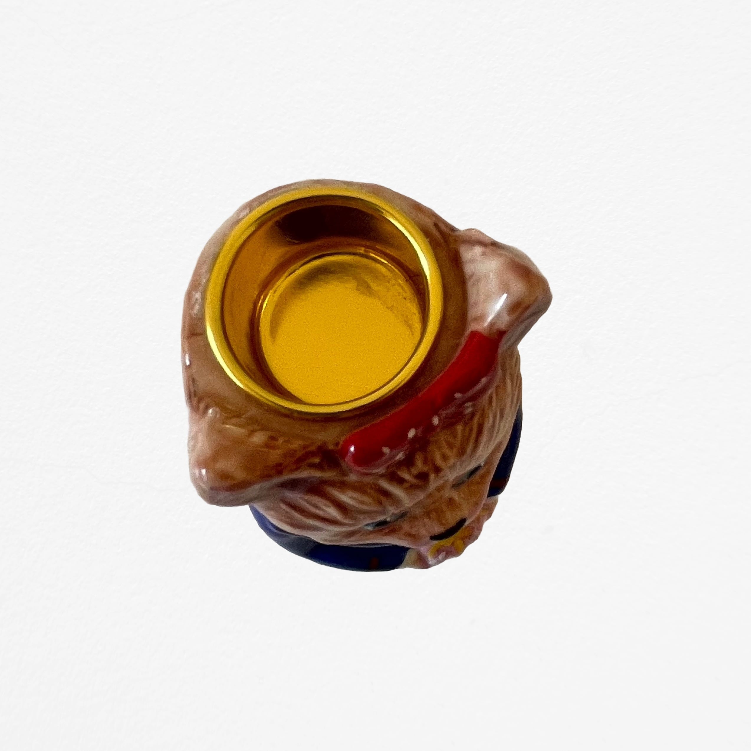 頭上のホルダーにカラフルなキャンドルを立てれば、お部屋に温かな灯りと物語を運んでくれます。小ぶりながらも圧倒的な存在感を放つオブジェとして、リビングの棚やベッドサイドを華やかに彩る、特別なコレクターズアイテムです。