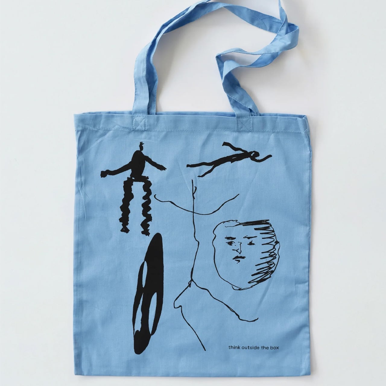グラフィックデザイナー 山口崇多さんが手がけるブランド『published by collé』のトートバッグ。「THINK OUTSIDE THE BOX」は頭を柔らかくして自由に発想するというような意味の言葉。自由にイメージを膨らませることによって生まれたピープルたちを思いっきり散らした威勢の良いトートバッグが出来上がりました。