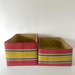 アフリカ・マダガスカルからやってきたズズルという水草を編み上げた可愛い蓋付きかご。蓋つきタイプで小物などがスッキリ収納できます。上と下を別々に使用しても便利! インテリアにも映える可愛い色柄にも注目!使うほどに愛着が湧きそう。めずらしい特大サイズです。