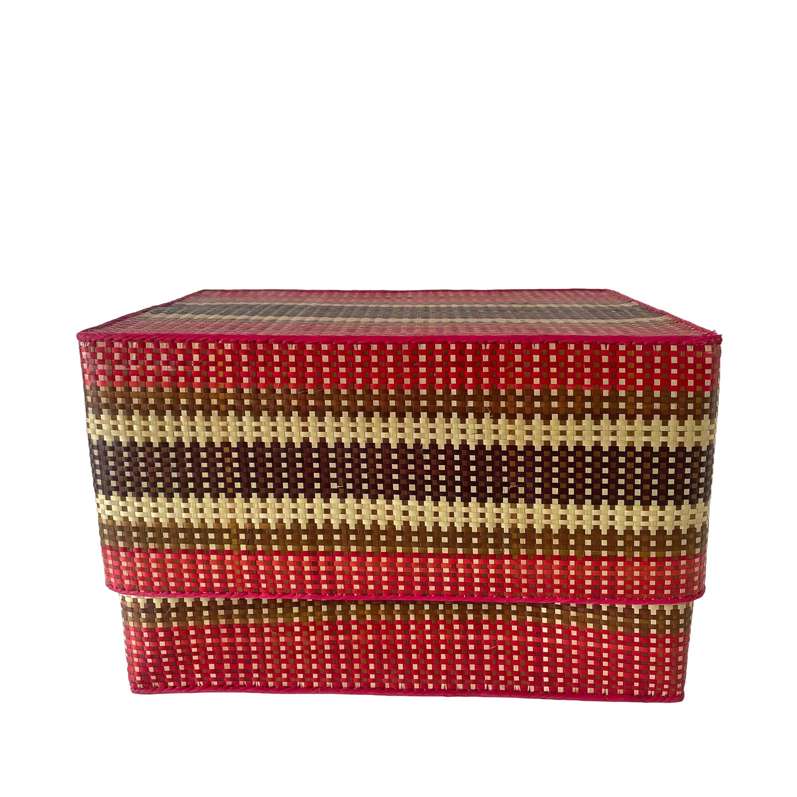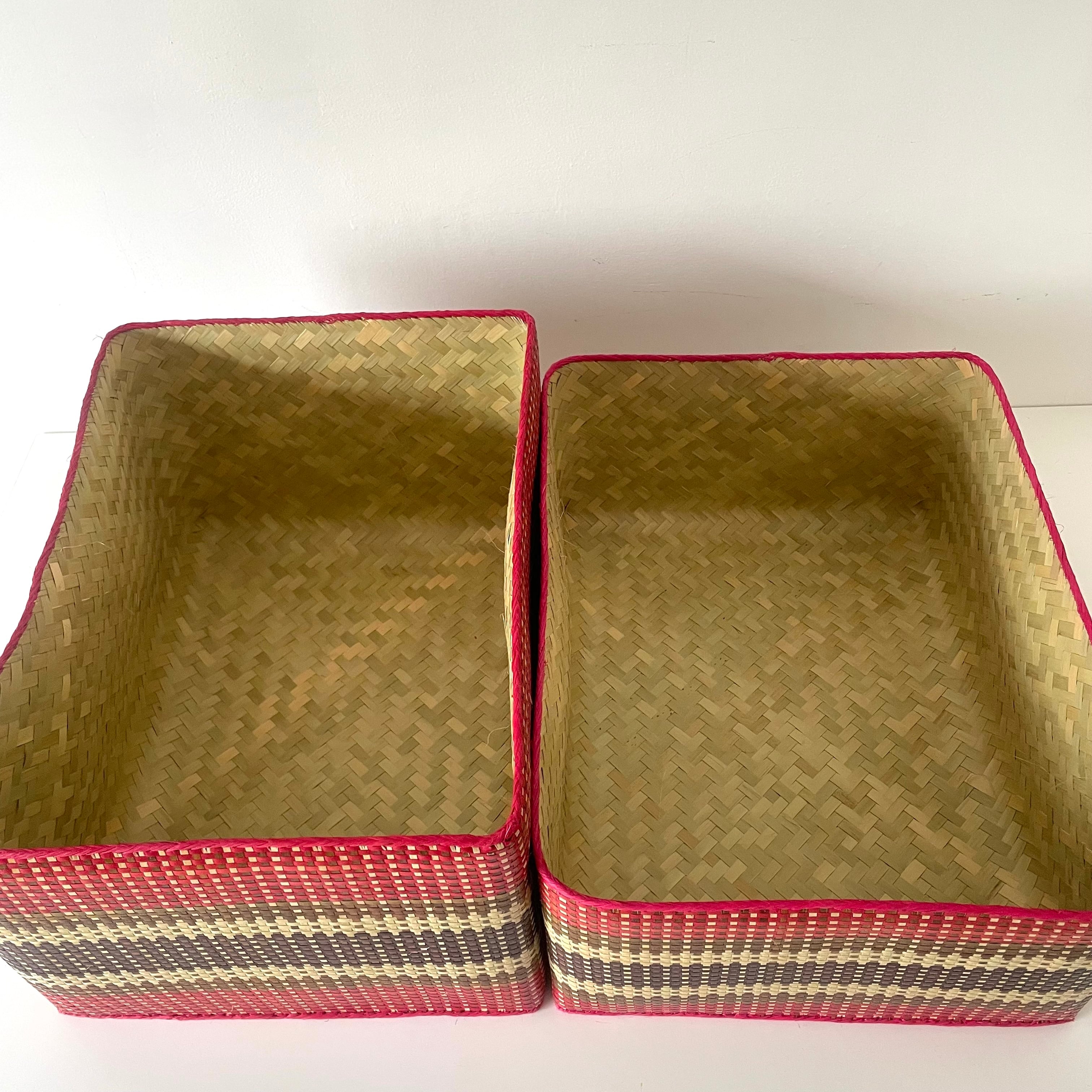 アフリカ・マダガスカルからやってきたズズルという水草を編み上げた可愛い蓋付きかご。蓋つきタイプで小物などがスッキリ収納できます。上と下を別々に使用しても便利! インテリアにも映える可愛い色柄にも注目!使うほどに愛着が湧きそう。めずらしい特大サイズです。