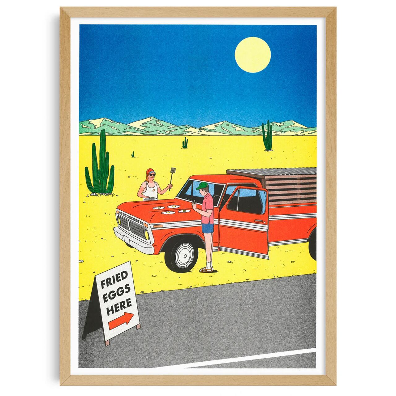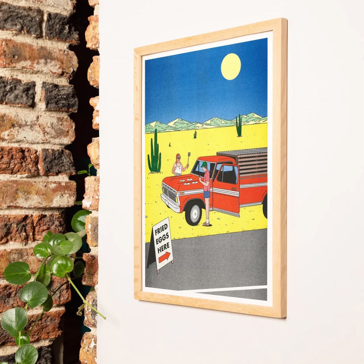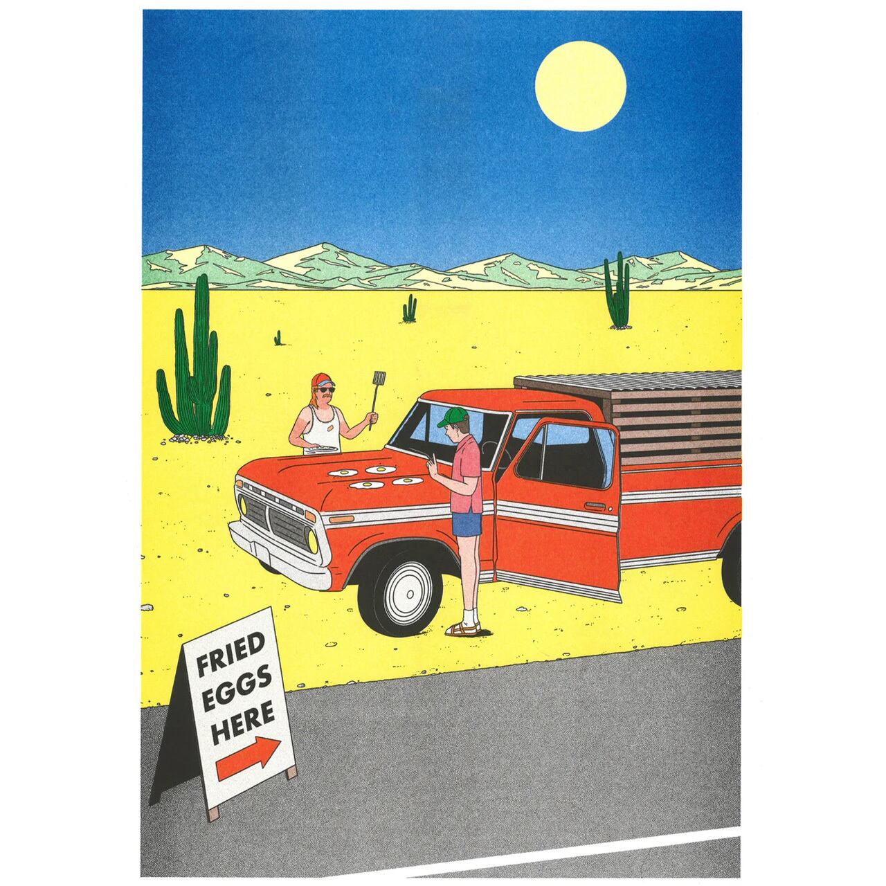 フランス・リヨン発KIBLIND Atelierから、Simon Bailly(シモン・バイイ)による「If you don't have stove, use a pickup(コンロがなければ、ピックアップトラックを使えばいい)」。本作品は、KIBLINDが毎年開催しているイラストレーション・フェスティバルのために企画された限定コレクション「If...」の一篇です。