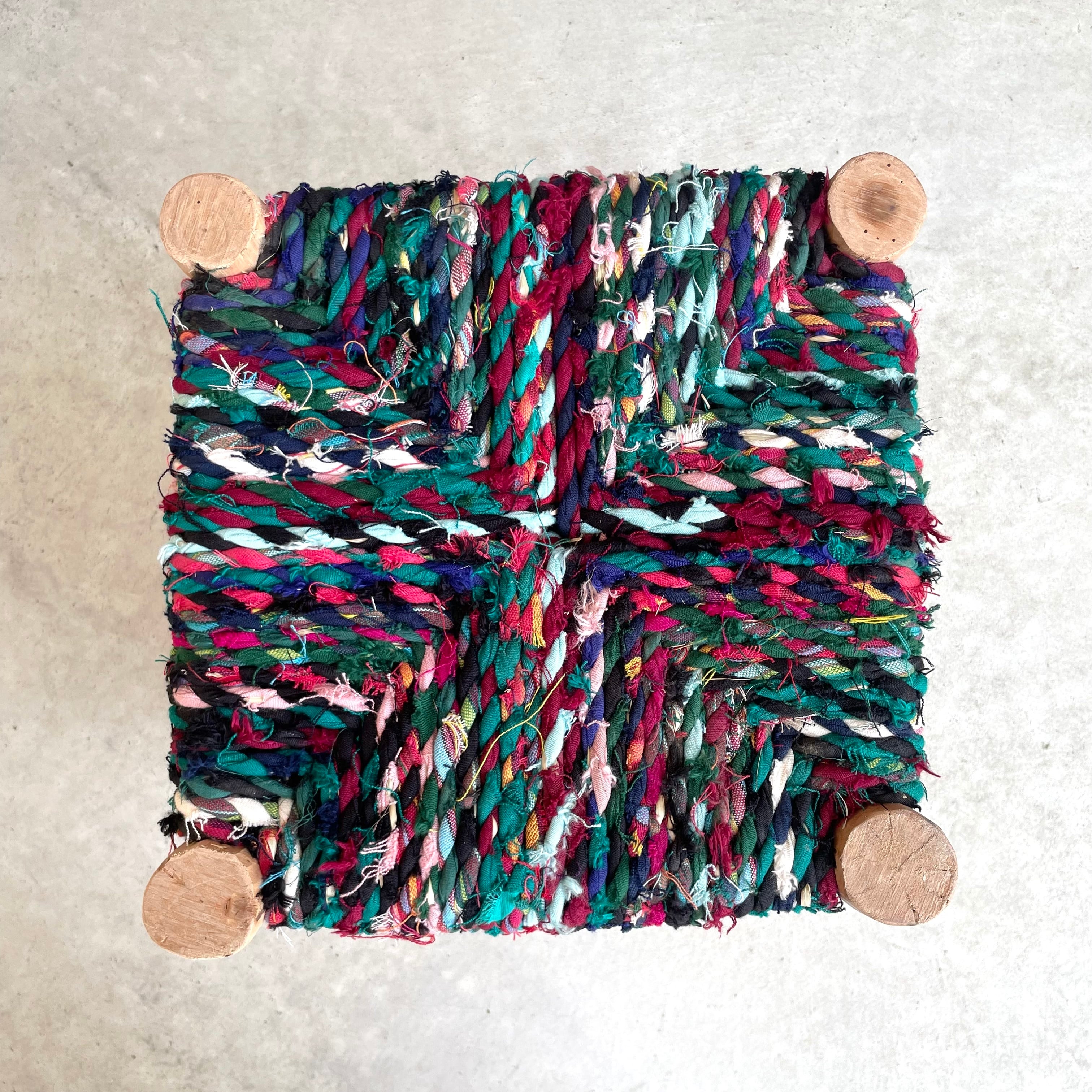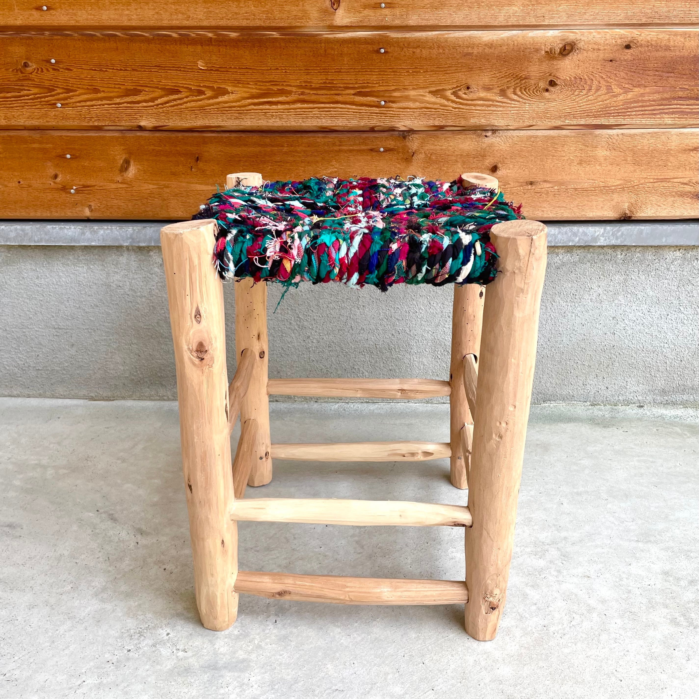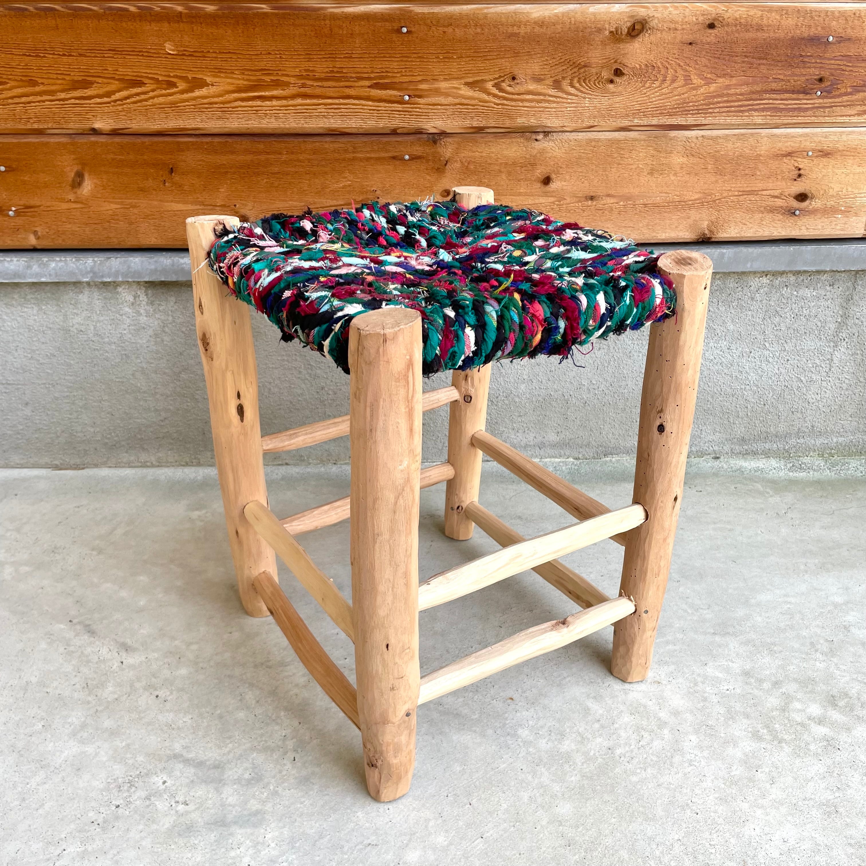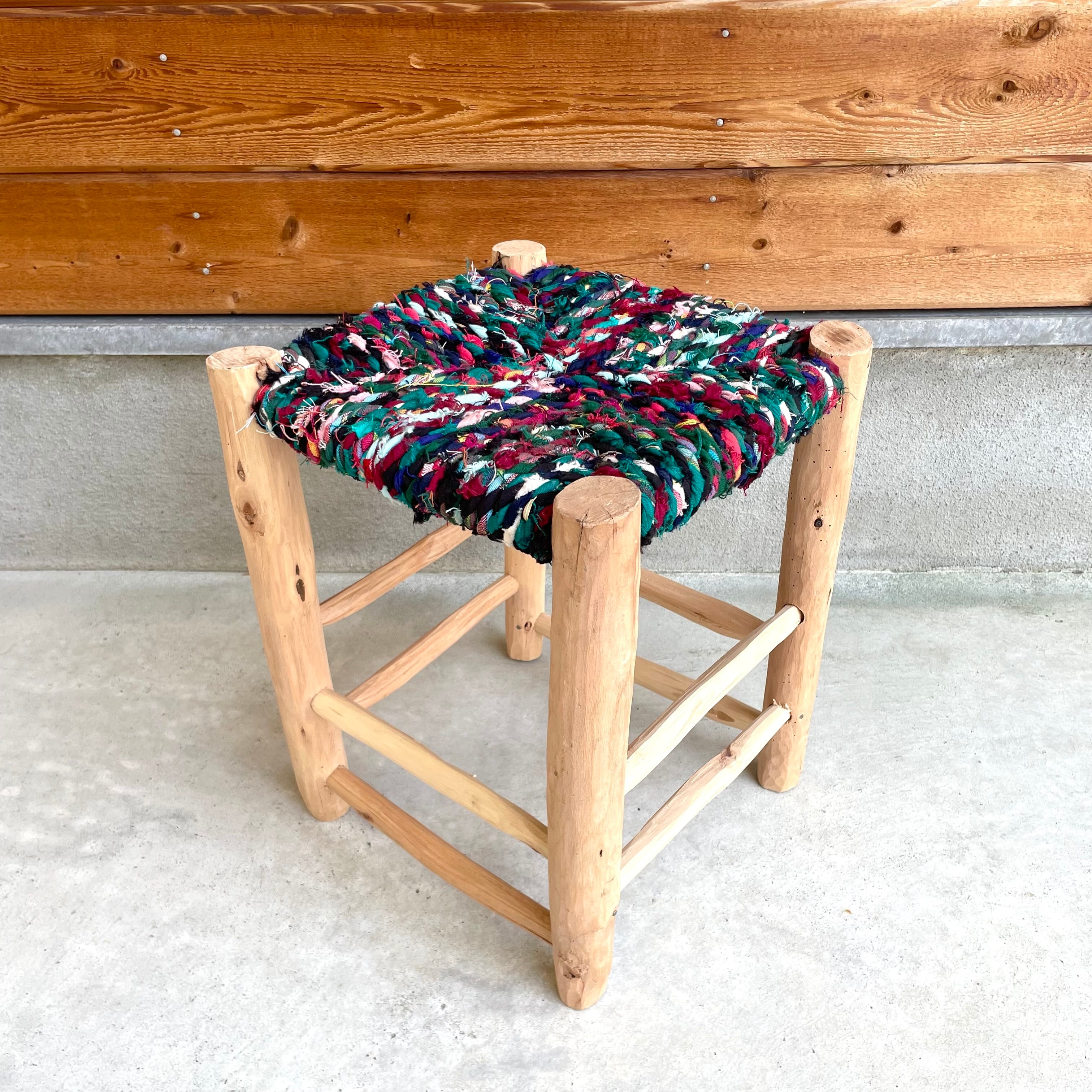 モロッコからやってきたナチュラルな雰囲気が素敵な座面に布を編み込んだ木製の椅子。軽くてコンパクトな低座タイプなので、ちょっとした腰掛けや玄関椅子などに便利です。ナチュラルな木の風合いを生かした脚やすべて手作業で作られる1点ものという点も魅力的!