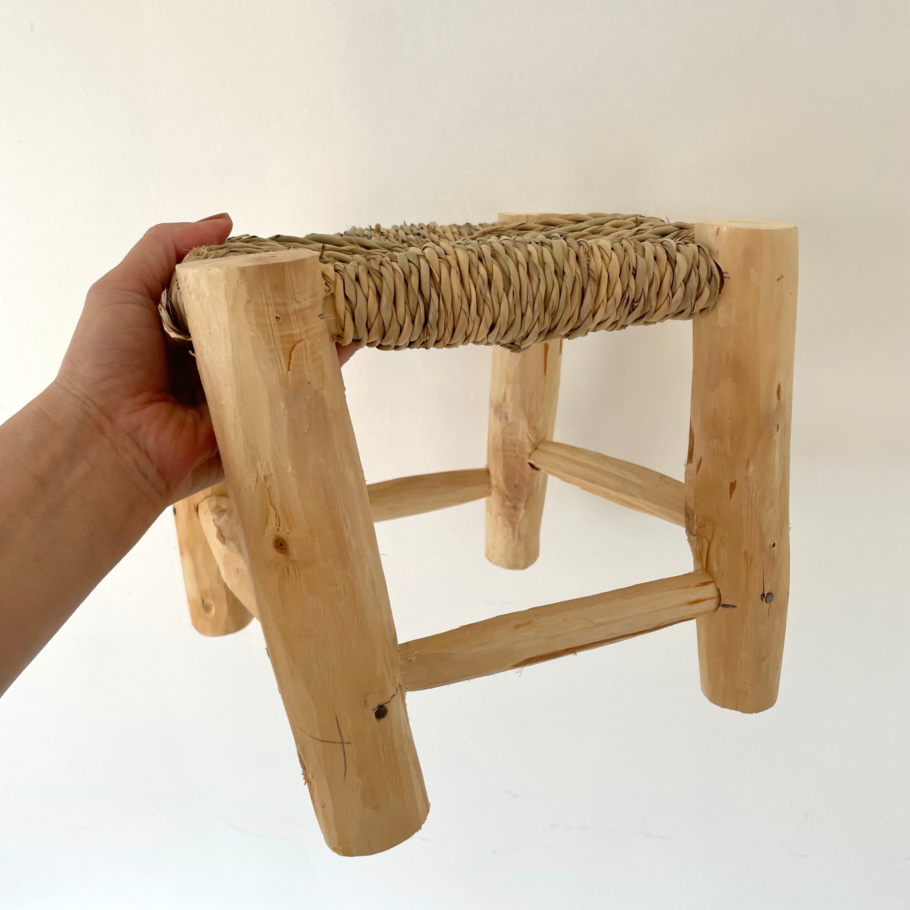 モロッコからやってきたナチュラルな雰囲気が素敵な水草を編み込んだ木製の椅子。軽くてコンパクトな低座タイプ&ミニタイプなので、お子様用の椅子やちょっとした腰掛けや玄関椅子などに便利です。水草を編み込むように張った座面が特徴で、使い込むほどに馴染みます。ナチュラルな木の風合いを生かした脚やすべて手作業で作られる1点ものという点も魅力的!
