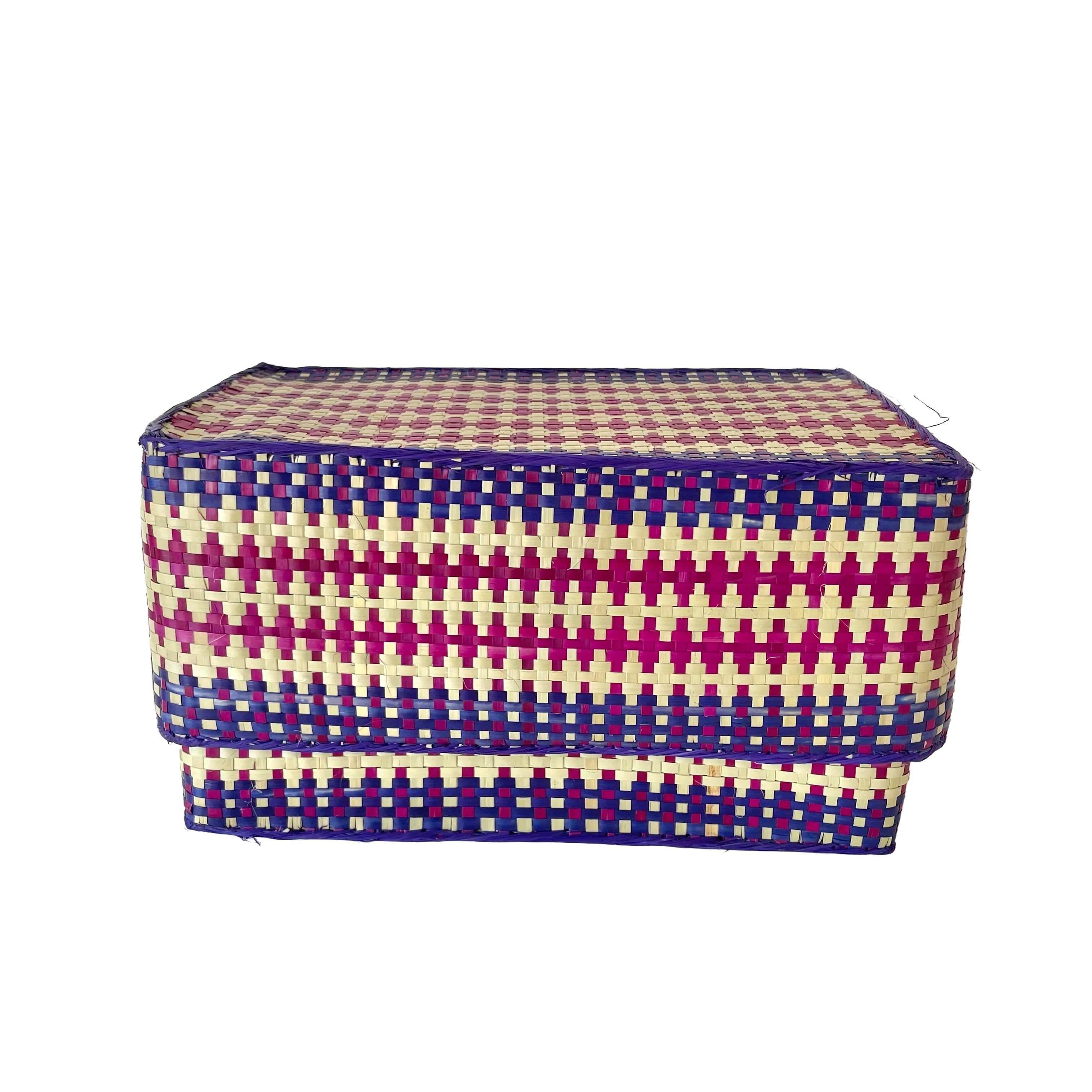 アフリカ・マダガスカルからやってきたズズルという水草を編み上げた可愛い蓋付きかご。蓋つきタイプで小物などがスッキリ収納できます。上と下を別々に使用しても便利! インテリアにも映える可愛い色柄にも注目!使うほどに愛着が湧きそう。