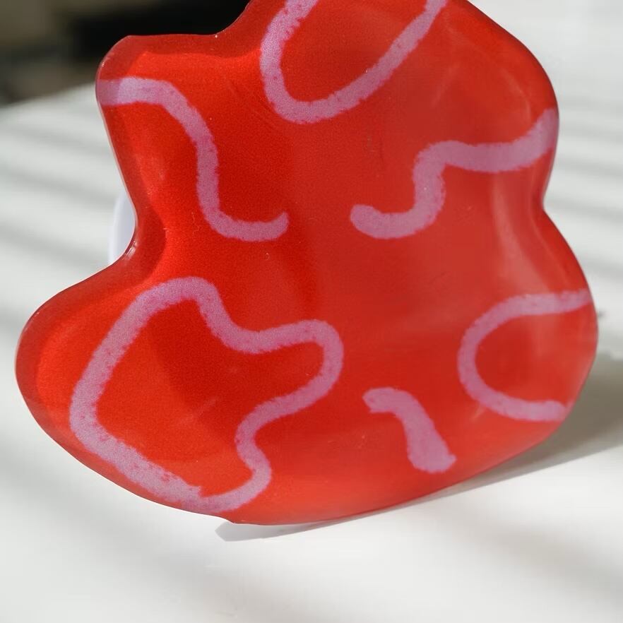 エネルギッシュなレッドをベースに、自由な曲線が躍るアーティスティックなスマートフォングリップ。パキッとした鮮やかな赤色の上に、柔らかなピンクのラインがリズミカルに描かれており、どこか生命力さえも感じさせるアブストラクトなデザインに仕上げました。