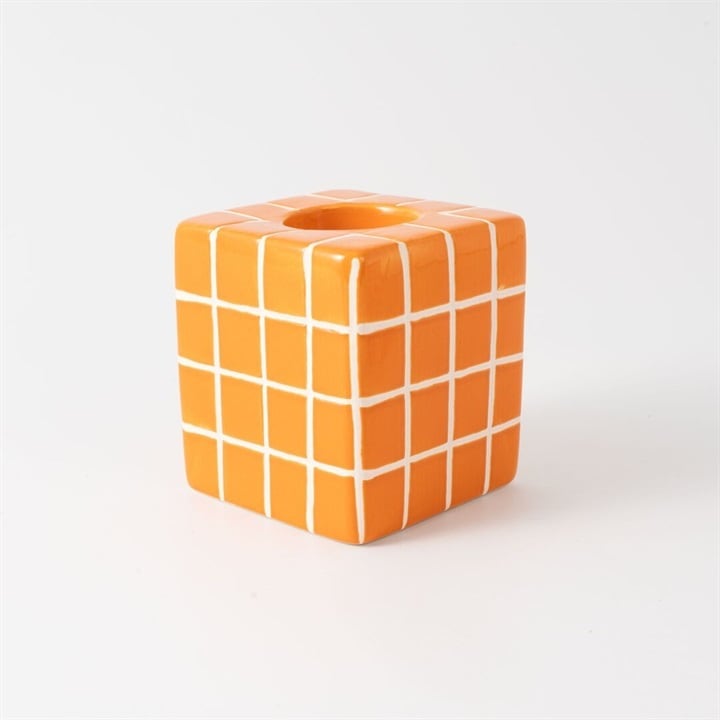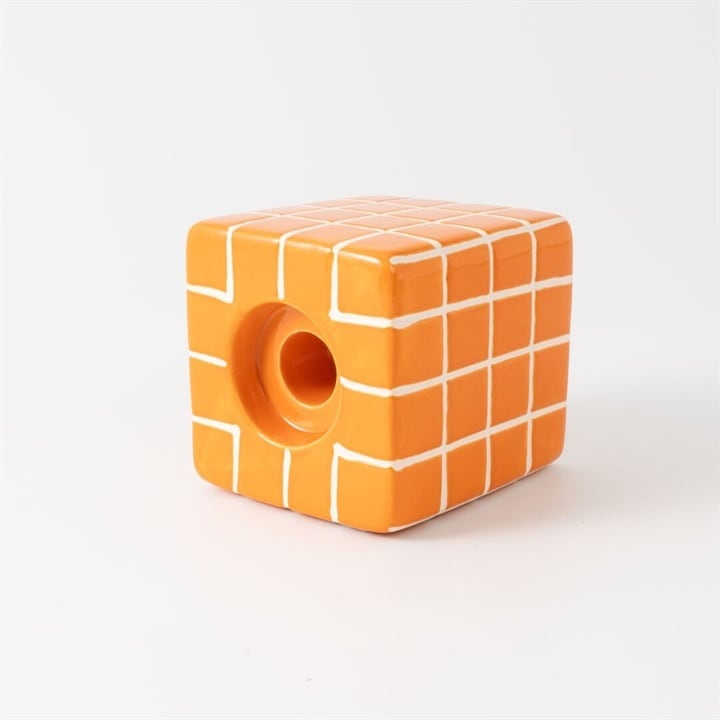 個性的なデザインで空間を彩る、ドイツの老舗インテリアブランド【BOLTZE】のキャンドルホルダー。オレンジ色のボディに白いグリッド(格子)模様が施されており、まるでポップなタイルを積み重ねたようなユニークなキューブ型。インテリアのアクセントとして、お部屋に遊び心をプラスしてくれます。キャンドルホルダーとしてはもちろん、窓辺や棚に飾ってオブジェとして楽しむのもおすすめです。