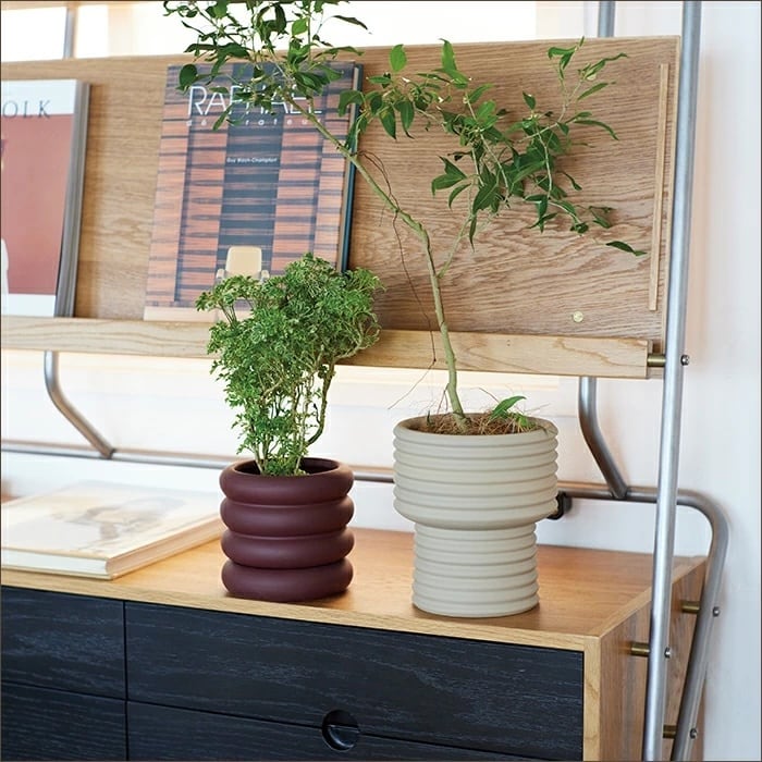 マットな表情で洗練された雰囲気の素敵な植木鉢。モダンな印象の植木鉢は底穴のあるタイプなので直植えも可能。素敵な色合いの植木鉢でおうち時間をお楽しみください。
