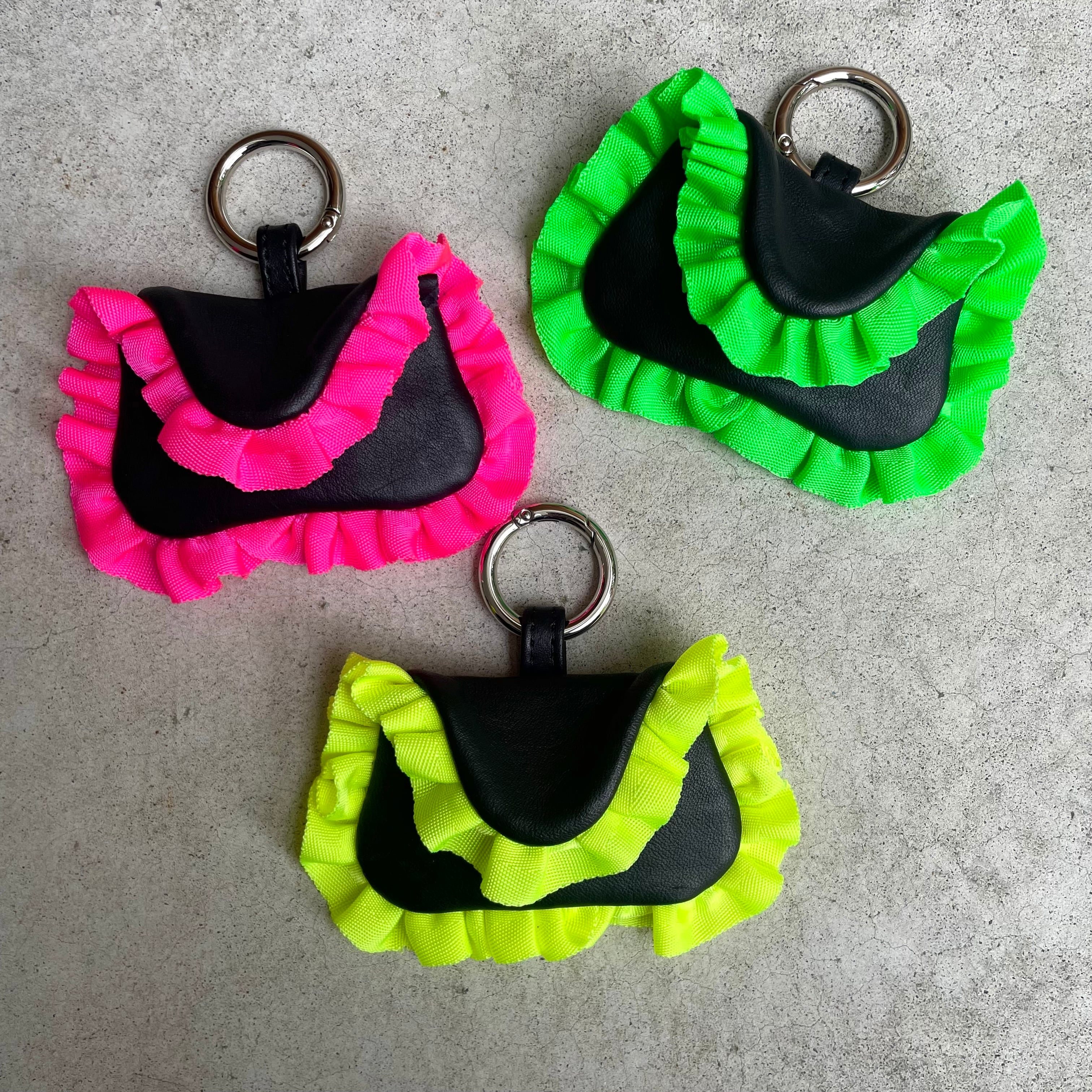 "FRILL"シリーズの中でも、ひときわ愛らしく、かつエッジィな表情を見せるコインケース。