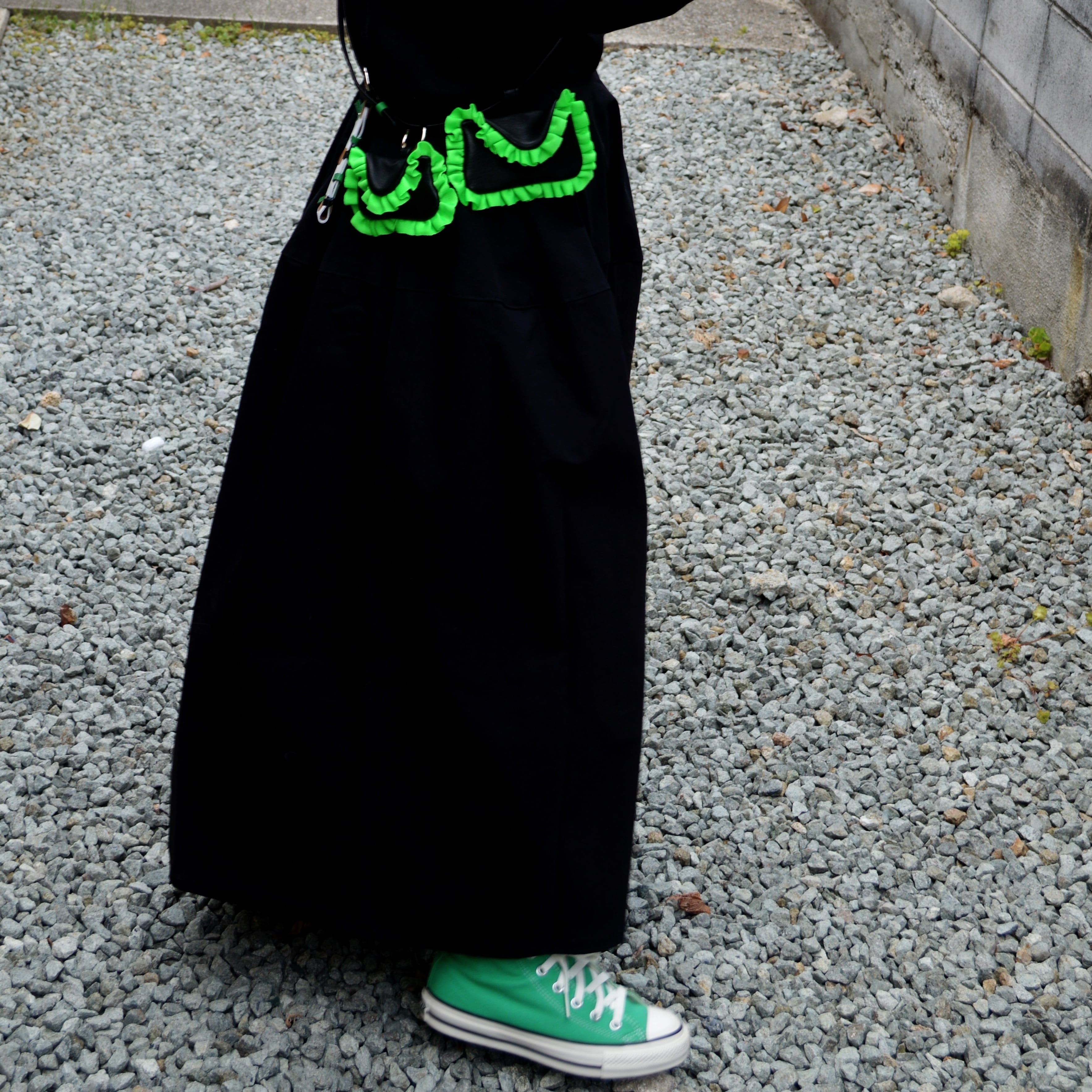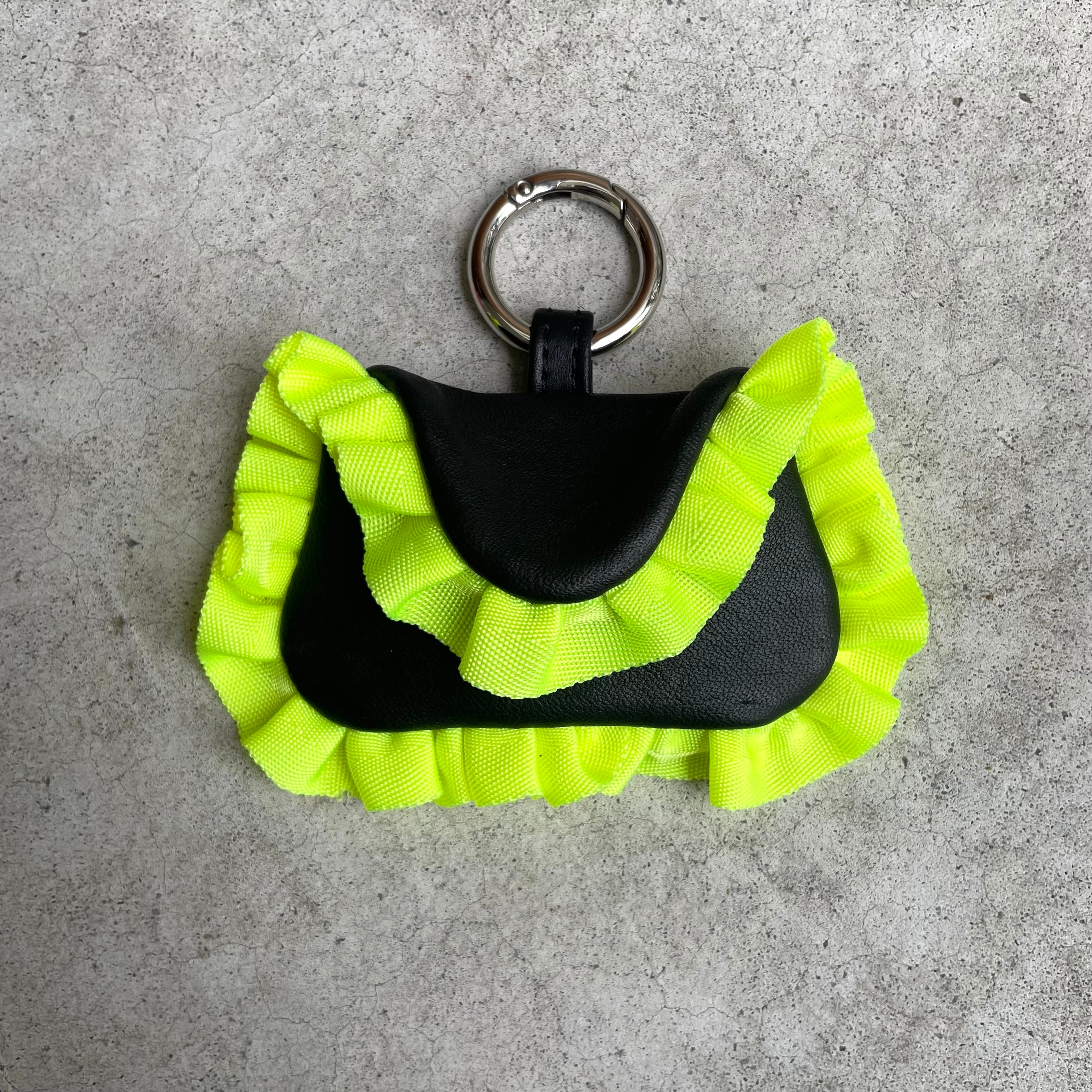 ふっくらとした立体感のあるフォルムを縁取るのは、鮮烈なネオンカラーのフリル。ヤドクガエルの美しき警告色を思わせるその佇まいは、小銭を入れるという日常の行為を、ドラマティックな瞬間へと変えてくれます。この小さなボディを支えるのは、妥協のない素材選びです。ブラックの部分にはすべて、希少な馬革(Horse Hide)を採用。驚くほどしなやかで、吸い付くような手触りを持つ馬革は、使い込むほどに品のある艶を増していきます。