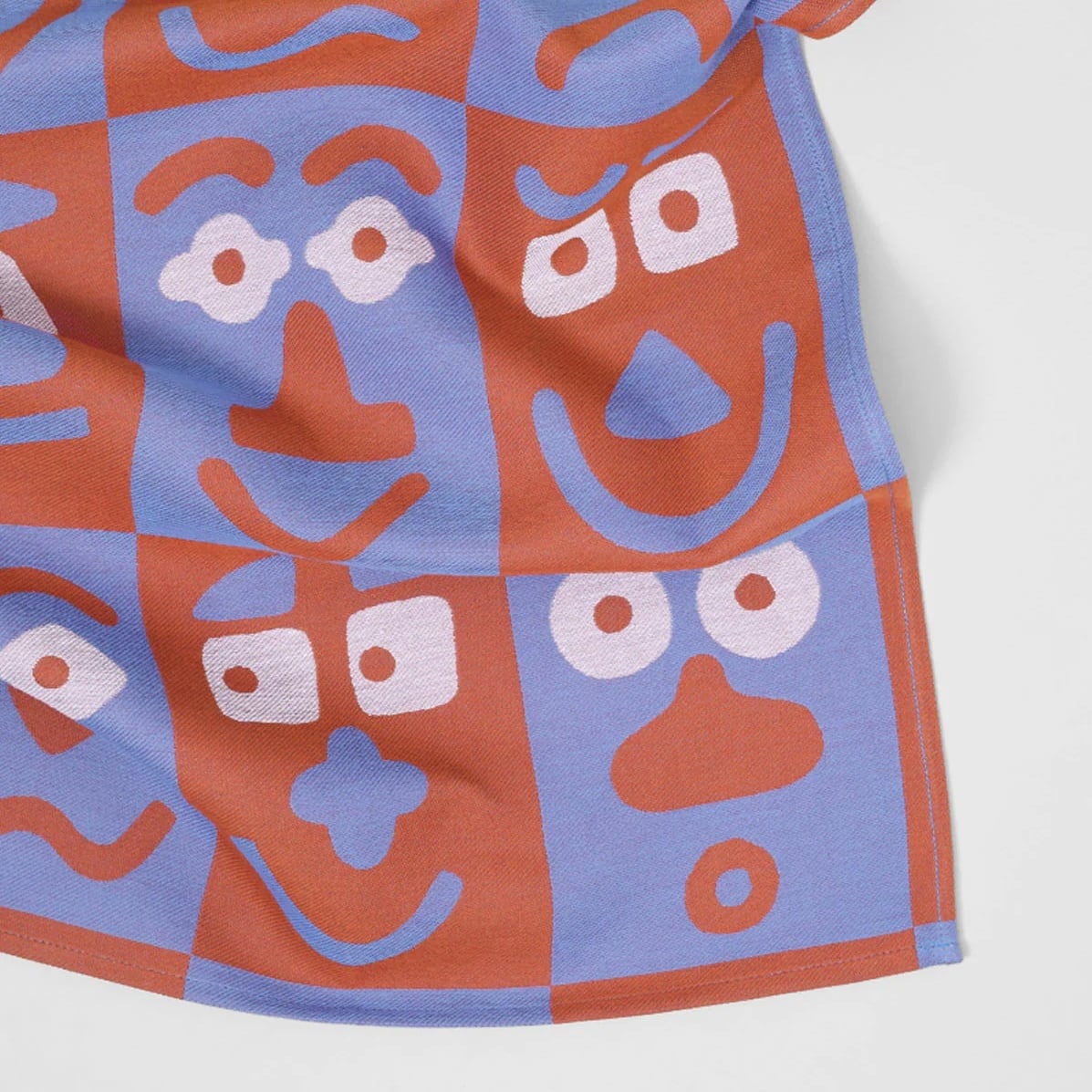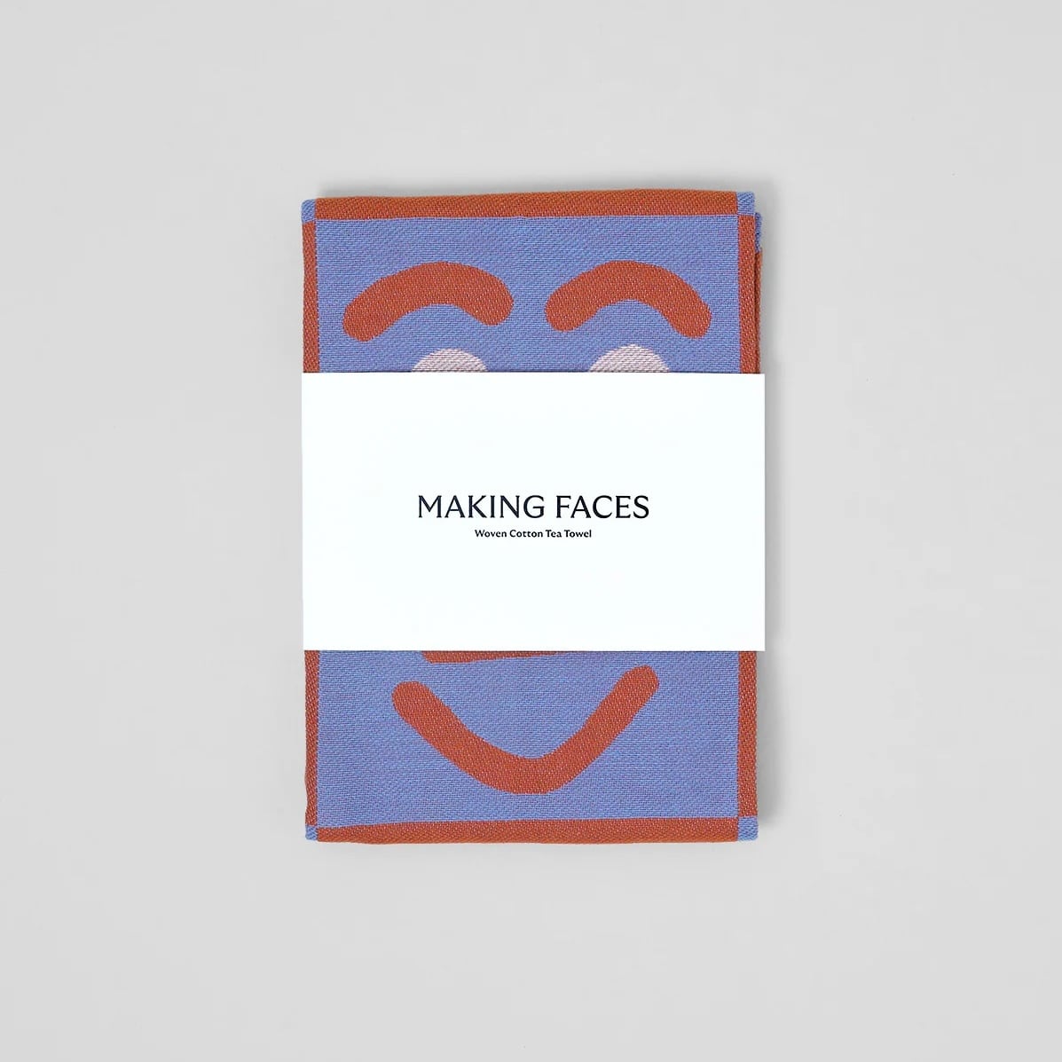 WRAP "Making Faces Blue/Brown Tea Towel" Artwork by Cari Vander Yacht