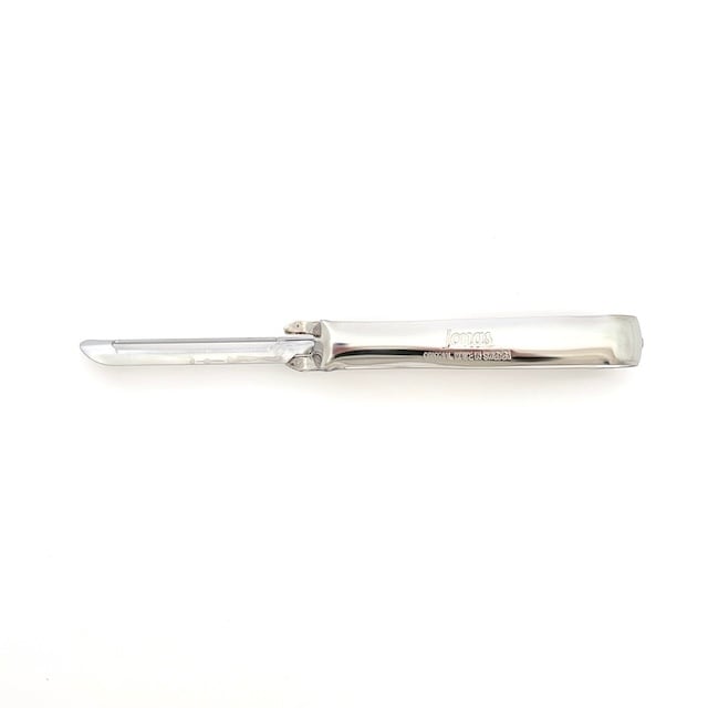 良質な鉄鉱石が採れるスウェーデンで、ステンレス製キッチン用品を長年にわたり製造してきたヨナス。近年は家庭用のアイテムも充実していますが、もともとは業務用品をつくるメーカーでした。現在もスウェーデン国内でほとんどの製品を製造し、北欧の洗練されたデザインと質実剛健な機能性を持つヨナスの製品は、アメリカやヨーロッパ各国でもたいへん高く評価されています。現地ではヨナスのプロダクトの中で一番有名かも知れないこのピーラー、1953年から製造されナイフ感覚で使えるI型ピーラーは、ジャガイモをよく食べるスウェーデンでは知らない人がいないくらいです。日本ではゴボウのささがきや丸い野菜の皮むきに最適です。