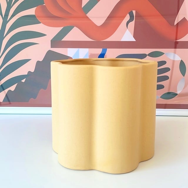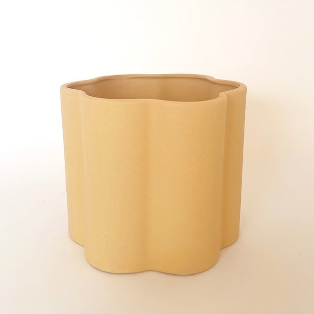 マットな質感とモクモクとまるで雲やお花のように可愛いデザインの素敵な植木鉢。モダンな印象の植木鉢は底穴のないタイプなので鉢カバーとしてご使用ください。買って来たビニールポットをそのまま入れてお使い頂けるので、お手軽に入れ替えや模様替えをお楽しみください。