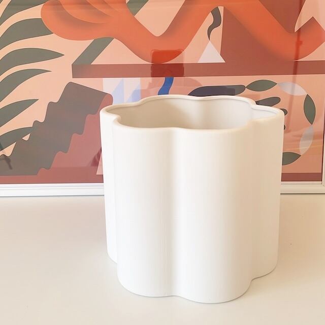 マットな質感とモクモクとまるで雲やお花のように可愛いデザインの素敵な植木鉢。モダンな印象の植木鉢は底穴のないタイプなので鉢カバーとしてご使用ください。買って来たビニールポットをそのまま入れてお使い頂けるので、お手軽に入れ替えや模様替えをお楽しみください。