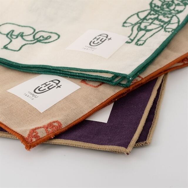+HAyU Gauze Embroidered Handkerchief 小川学 ガーゼ刺繍ハンカチ